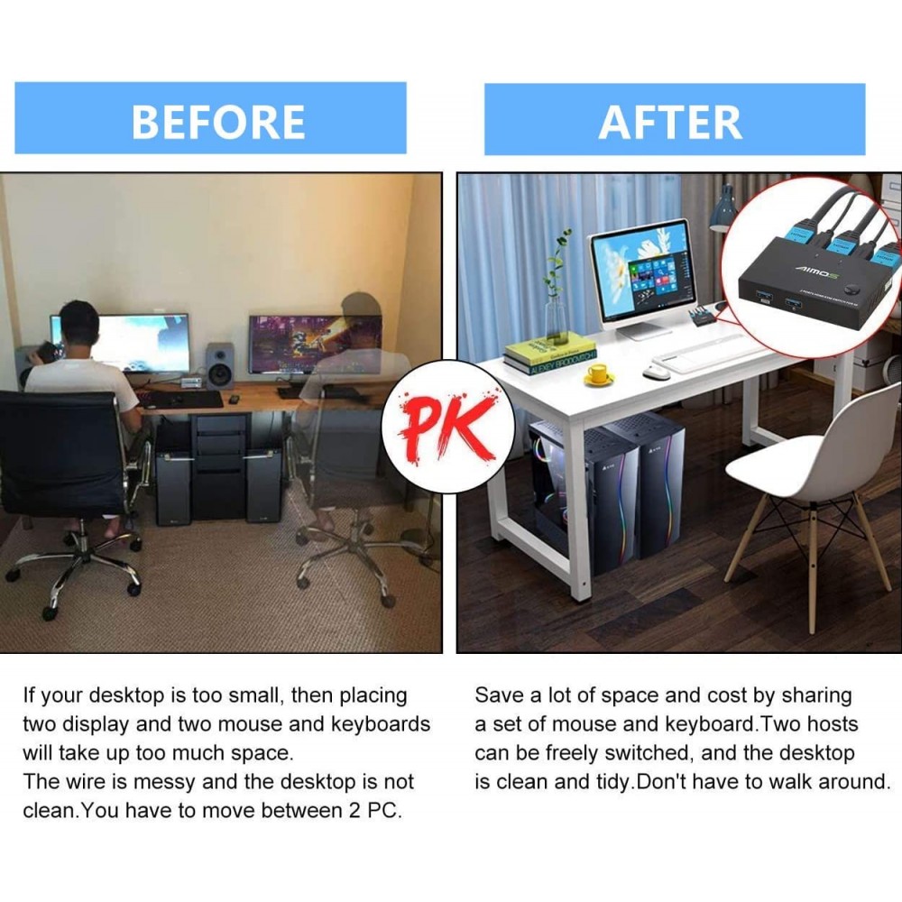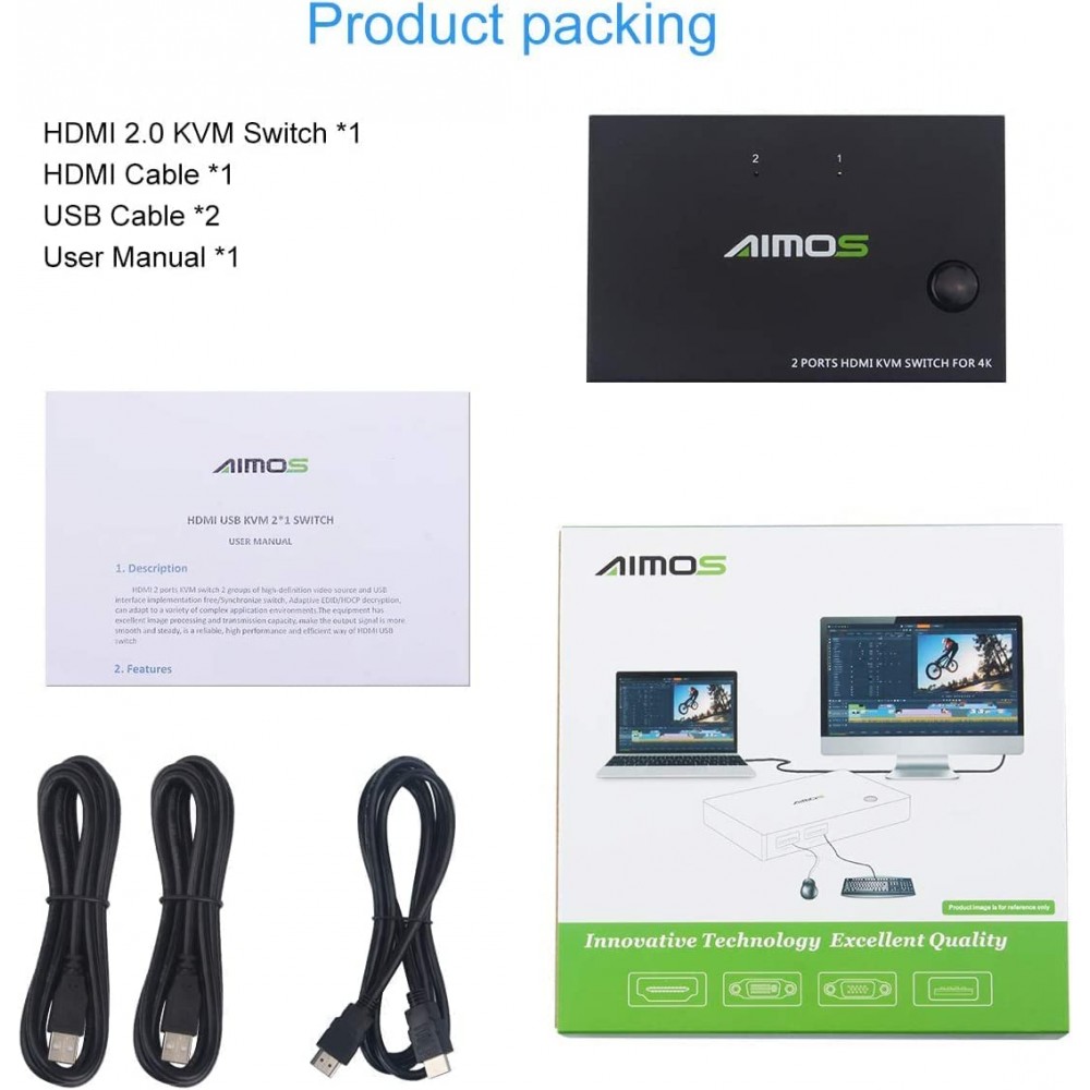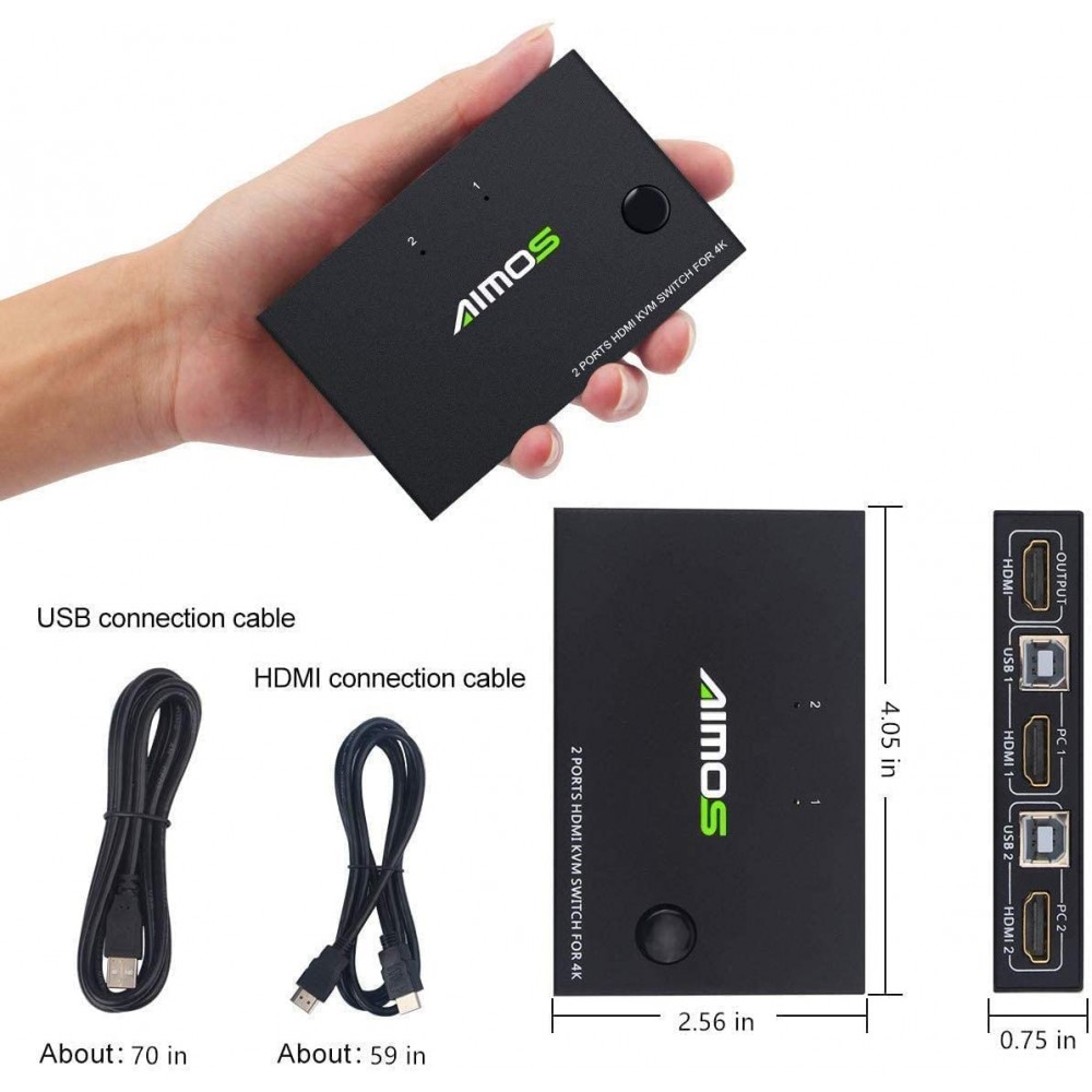 AIMOS Conmutador KVM 2 puertos, compatible con teclado mouse y monitor compartido ,compatible con HUD 4K
