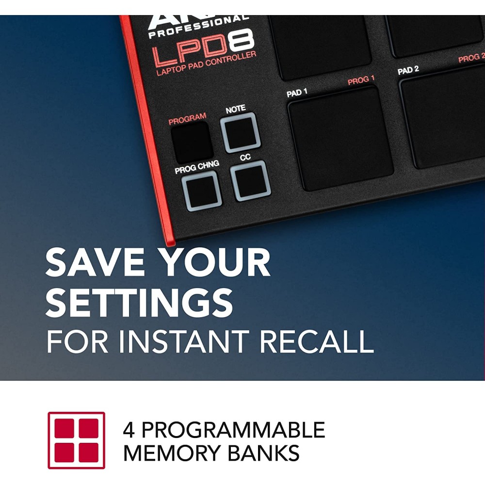 AKAI LPD8 - Controlador MIDI USB con 8 almohadillas de batería RGB MPC , 8 perillas asignables y software de producción de música