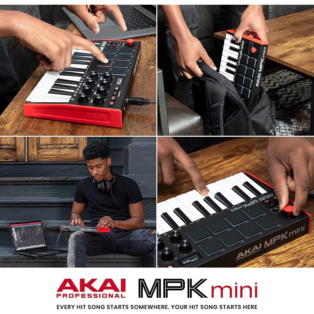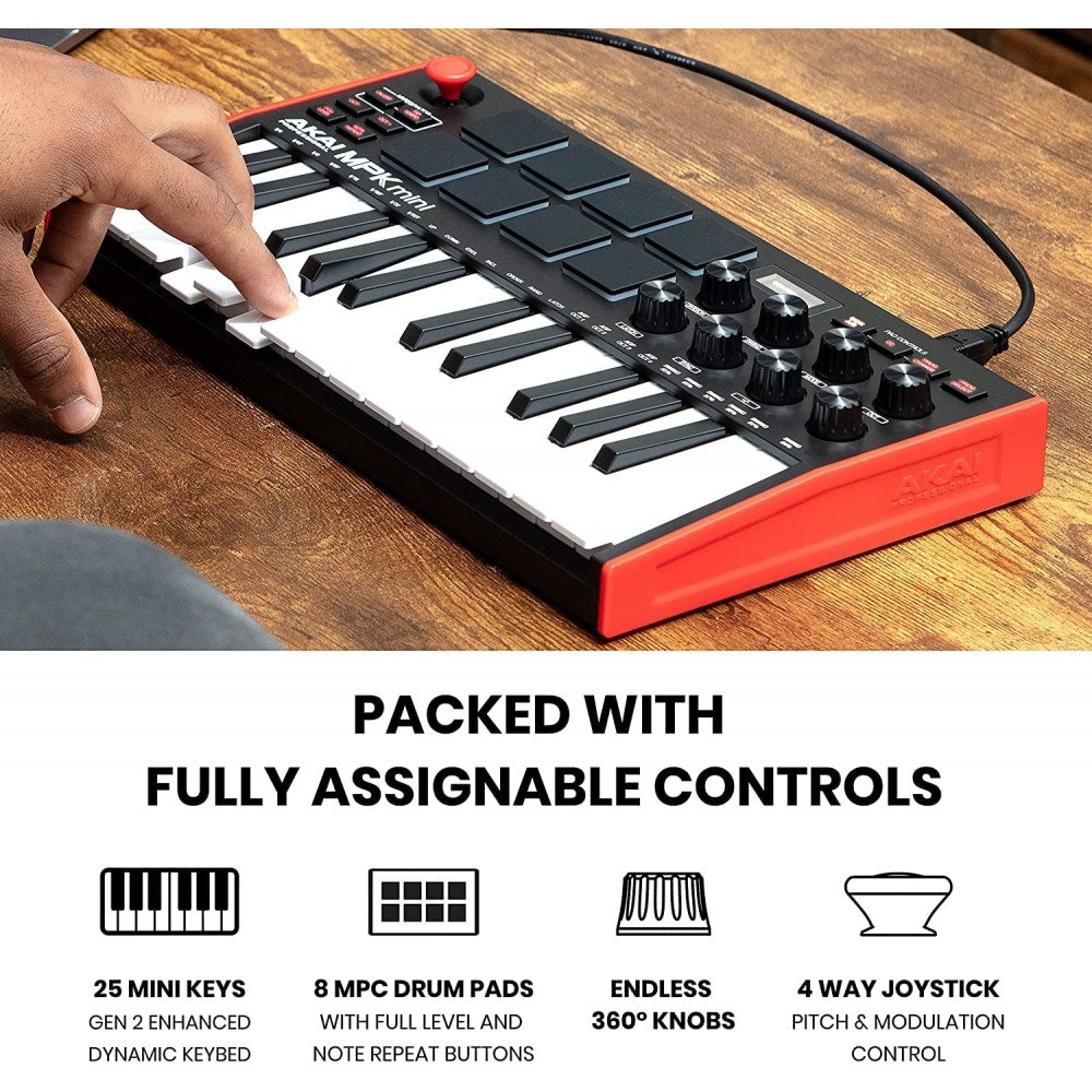 AKAI Professional MPK Mini MK3 Controlador de teclado MIDI USB de 25 teclas con 8 almohadillas, 8 botones y software musical incluido