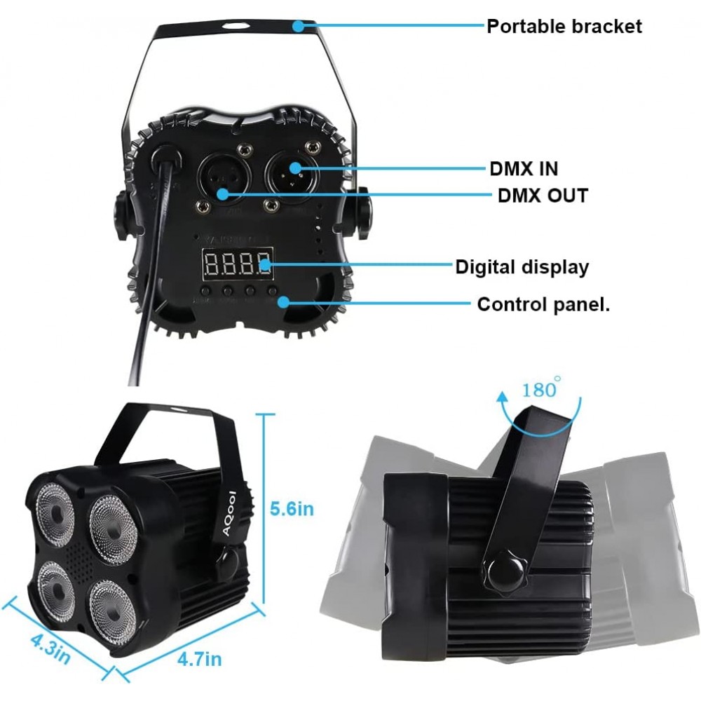 - Compacto pero potente: las luces de lavado portátiles AQOOL tienen cuatro modos de trabajo: Auto/Activado por sonido/DMX/Master-esclave, que puede satisfacer las necesidades de diferentes escenas. Ventilador de refrigeración duradero integrado, mejor rendimiento de disipación de calor.