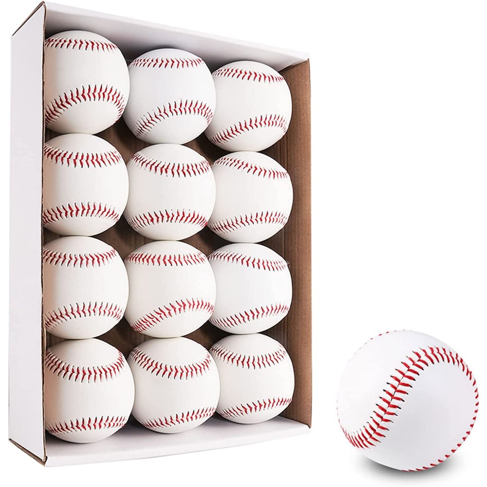 Baisidiwei Paquete de 12 pelotas de béisbol para adultos de tamaño estándar sin marcar y cubierta de cuero, para practicar béisbol para niños