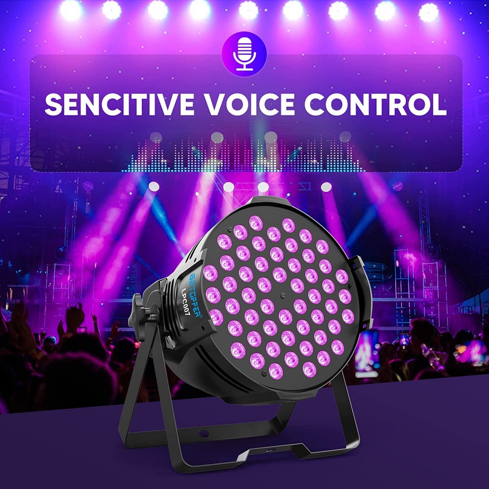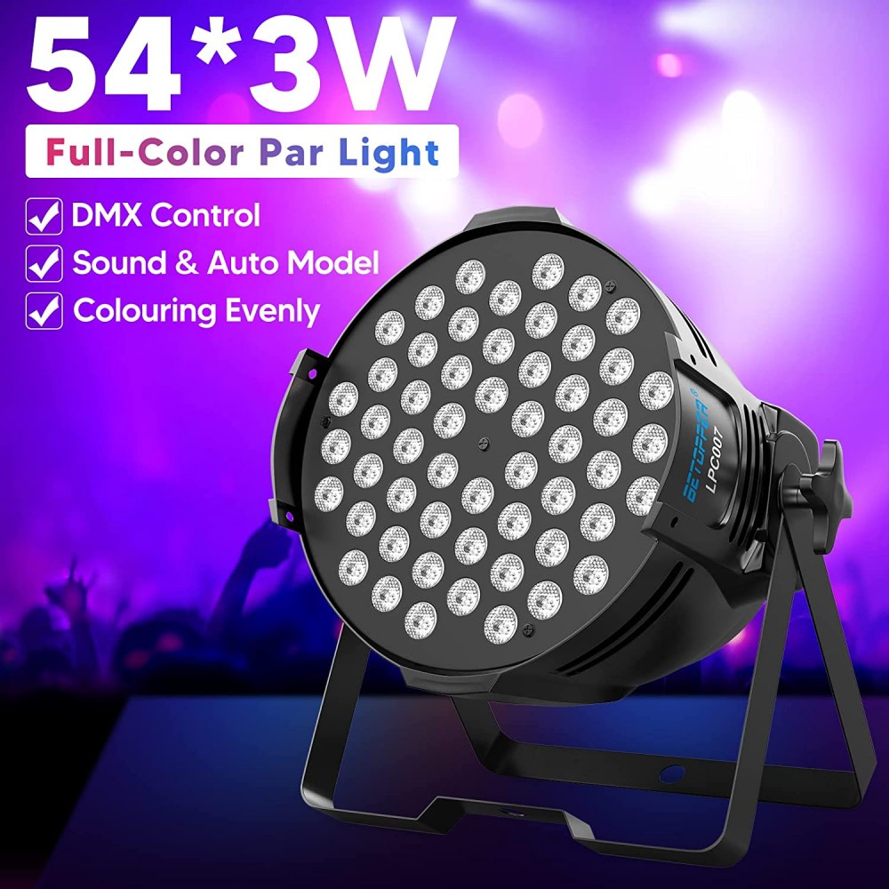 BETOPPER Luces de DJ DMX activadas por sonido, 54 x 3 W, par luces LED RGB para escenario DMX, luces de DJ par para iglesia, concierto