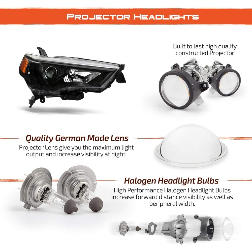 Conjunto de faros delanteros Toyota 4Runner 2014-2023 de proyector estilo fábrica - Carcasa negra