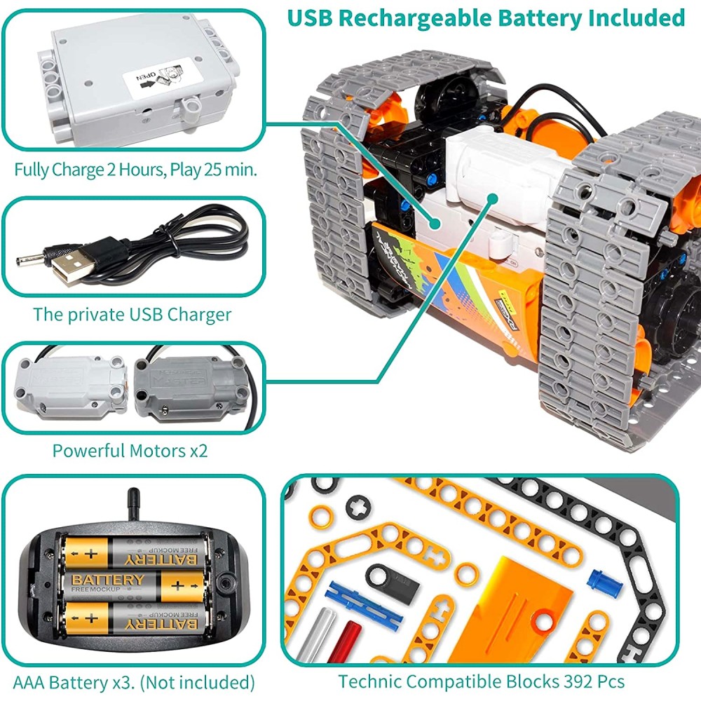 Coplus Kit de construcción STEM de control remoto, automóvil a control remoto, tanque, robot, corredor rastreado, 392 bloques Juguete