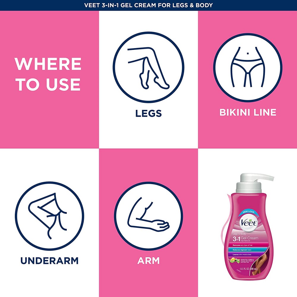Crema depilatoria Veet Gel Sensitive, Fórmula sensible con Aloe Vera y Vitamina E