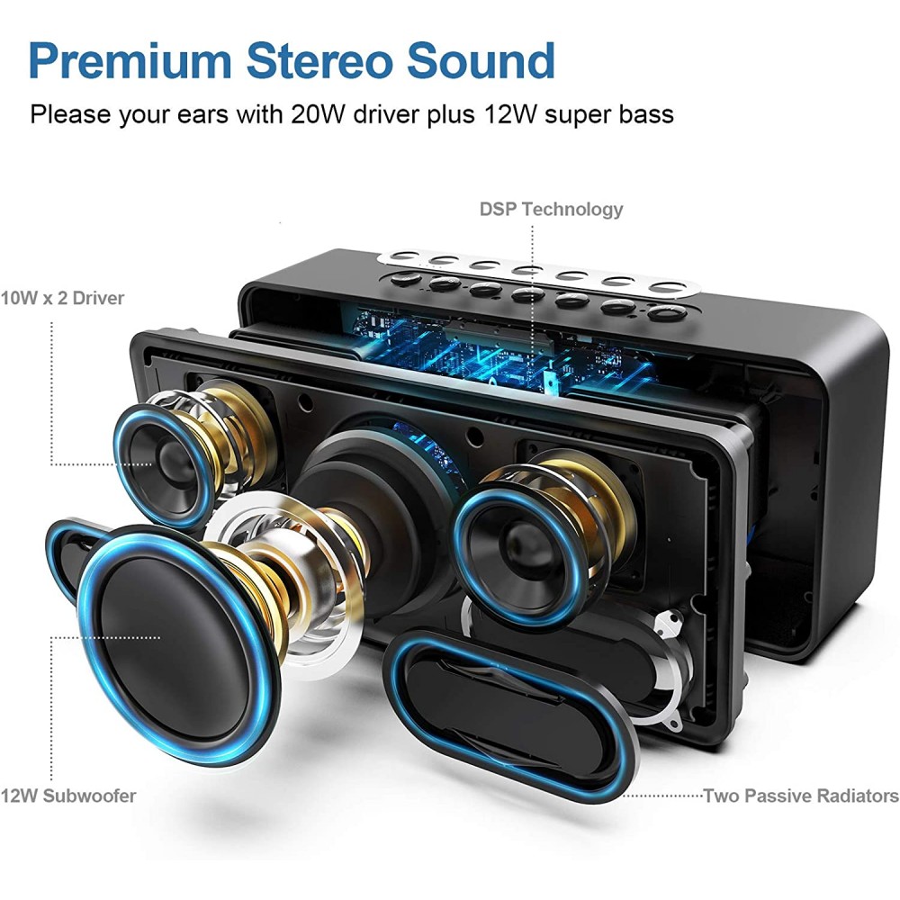 - Sonido: fuerte y radiadores pasivos subwoofer 20 W driver, 12 W, 2 × y tecnología DSP que salga derecho a orejas agradable con sólido, abundante. amplio escenario de sonido es lo suficientemente potente para llenar cualquier habitación.