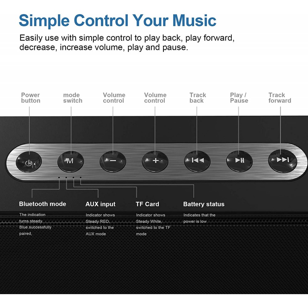 - Biblioteca de música inalámbrico: excepto conectividad a través de Bluetooth, y Aux In, puerto de tarjeta TF permiten Soundbox convertirse en una biblioteca de música por simplemente copia tu música favorita a una tarjeta de TF. let it juego no empotrado incluso sin cualquier dispositivo inteligente conexión.