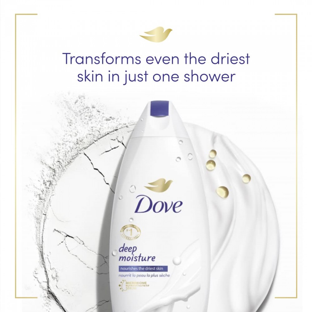 - ¿No tienes jabón de manos? El jabón corporal Dove Deep Moisture es igual de eficaz para limpiar las manos.