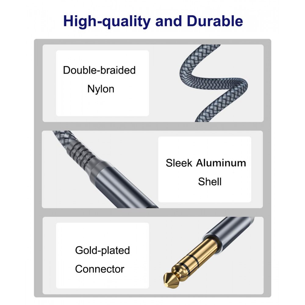 - Construido con conductor de cobre premium, blindaje de dos capas y conectores chapados en oro TRS para minimizar las interferencias de señal.