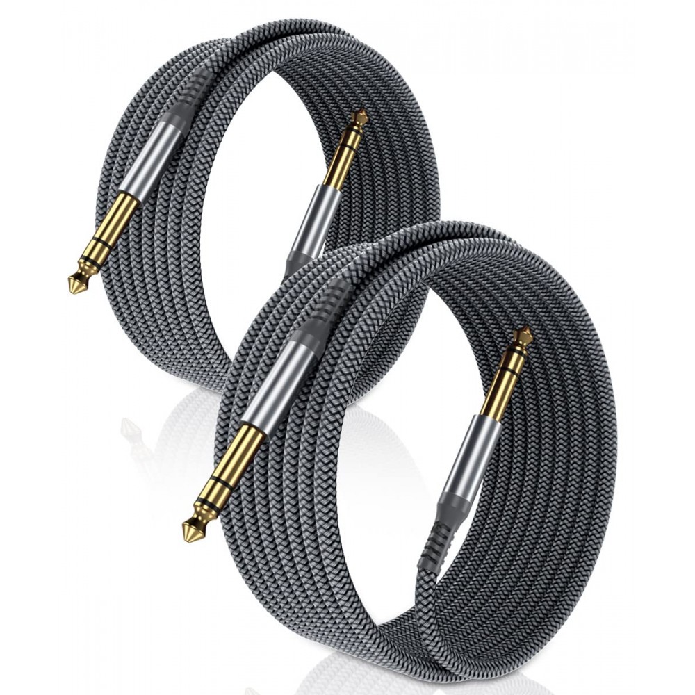 Elebase Cable de instrumento TRS de 1-4 pulgadas de 10 pies, paquete de 2, en ángulo recto a recto de 0.250 in, cable de audio estéreo