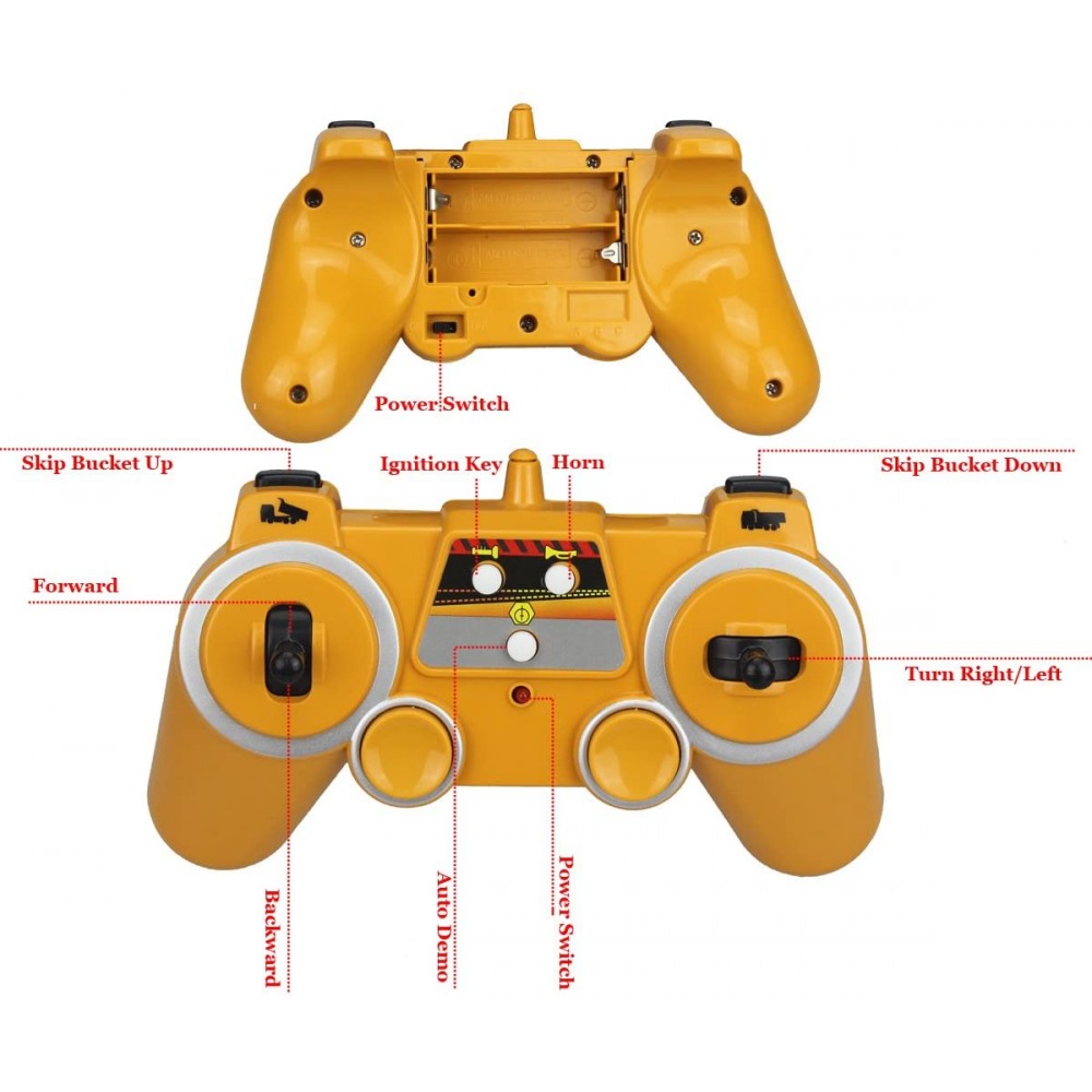 - Escala 1:20, longitud: 14 pulgadas, ancho: 6 pulgadas, altura: 8 pulgadas, una tecla de encendido (después de emparejar el controlador con camión, debe presionarlo antes de jugar el camión), función de demostración, pulsa 3 segundos el botón de silencio, el efecto de sonido se cerrará, no molestará a los padres mientras juegan.