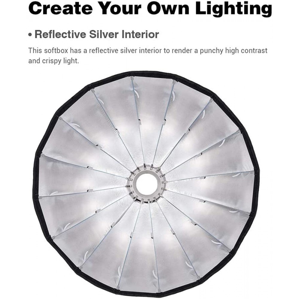 - Atractivo perfectamente redondo: el Godox QR-P90 utiliza 16 varillas para crear 32 puntos de eje, lo que permite una caja de luz excepcionalmente redonda que produce luces perfectamente circulares
