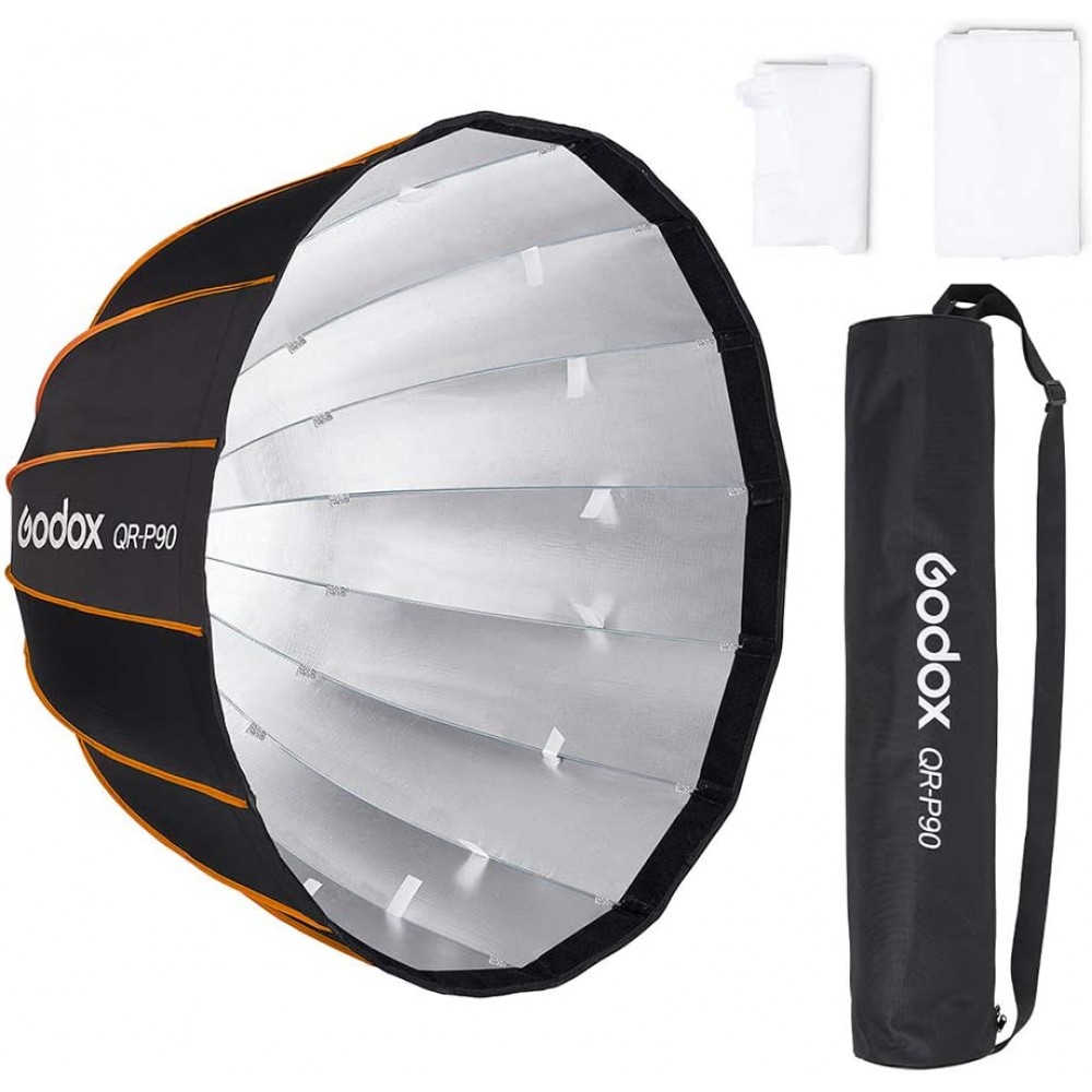 Godox QR-P90 - Caja de luz parabólica de 35.4 in, 35.4 pulgadas, montaje rápido de plegado rápido en un minuto, con difusor frontal e interior.
