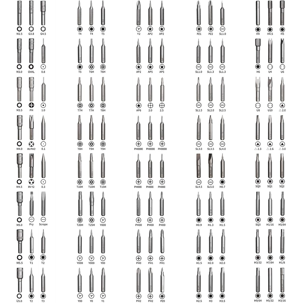 • Este juego de destornilladores tiene 120 puntas diferentes (Phillips, cabeza plana, Torx, Torx Security, Pentalobe, Triwing y más), que es útil para laptop, construcción de PC, teléfono celular, tableta, MacBook, iPhone, iPad, consolas de juegos/controlador, timbre de anillo, máquina de coser, HVAC, cuchillo y mucho más. Este es el kit de herramientas que cada bricolaje, fijador, aficionado y profesional necesita para hacer frente a cualquier trabajo, también es un regalo decente y genial para familiares, amigos, colegas, etc.