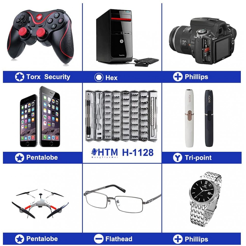 HengTianMei - Juego de destornilladores de precisión 128 en 1, kit de herramientas de reparación magnética profesional para computadora, portátil, Xbox, Macbook