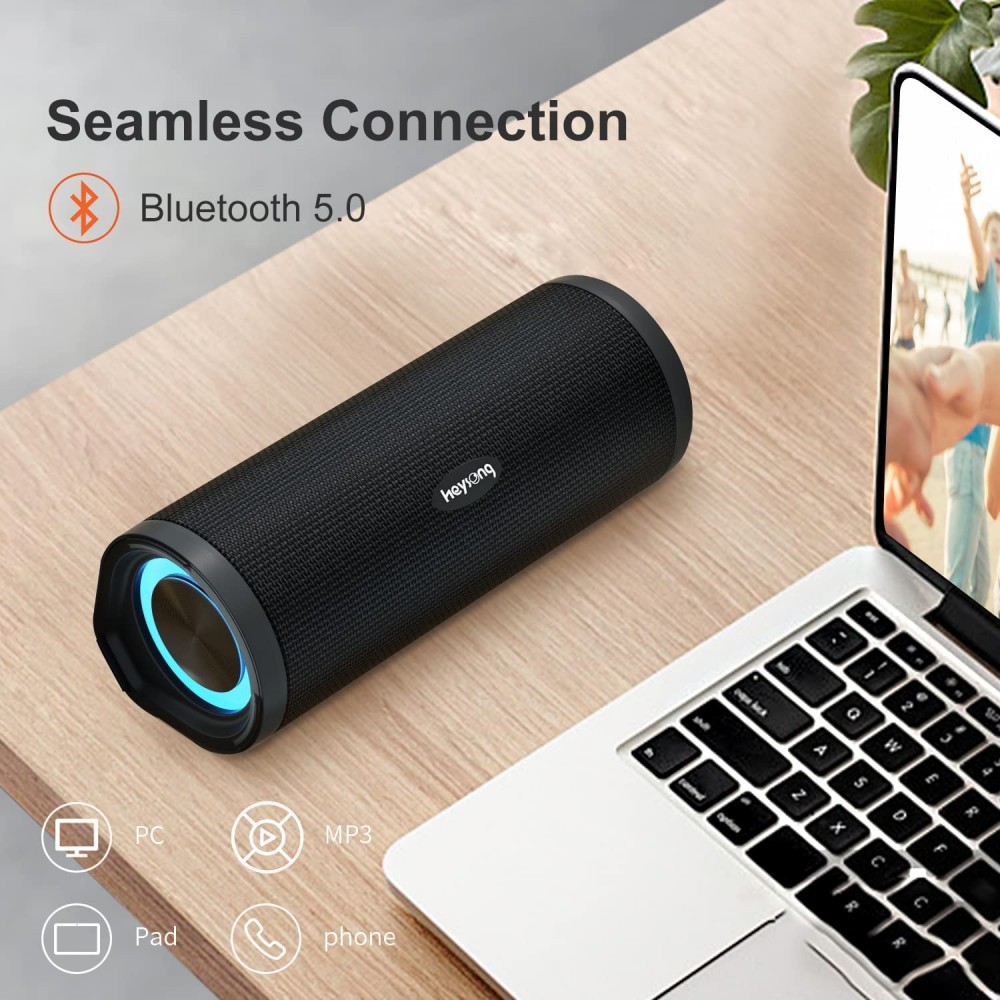 HEYSONG Altavoz Bluetooth portátil, altavoces inalámbricos impermeables para exteriores con luz LED, graves mejorados, flotación IPX7