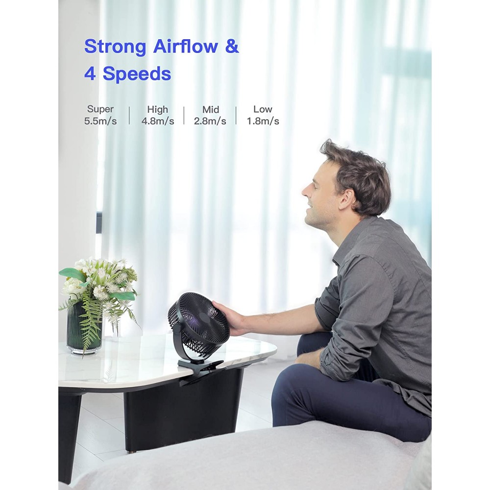 - 【4 ajustes de velocidad】: Es posible que no sepas que Airbition casi ha hecho que la velocidad del viento del ventilador de 8 pulgadas sea extrema. Este ventilador de clip funciona con pilas tiene ajustes de 4 velocidades. Este ventilador de tamaño compacto puede proporcionar una velocidad del viento de 5.9 ft/s-18.0 ft/s). Configura los ajustes en función del flujo de aire que necesites.