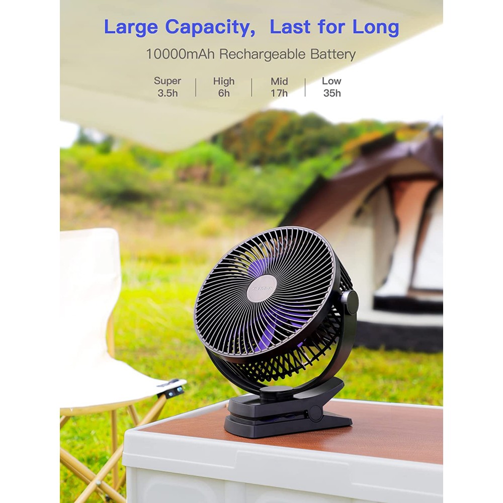 Airbition Ventilador con clip de 10000 mAh de 8 pulgadas, recargable, funciona con pilas, con abrazadera USB, portátil