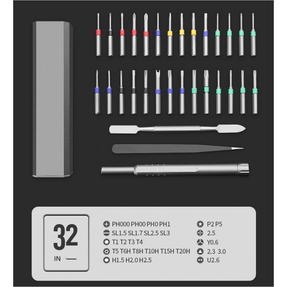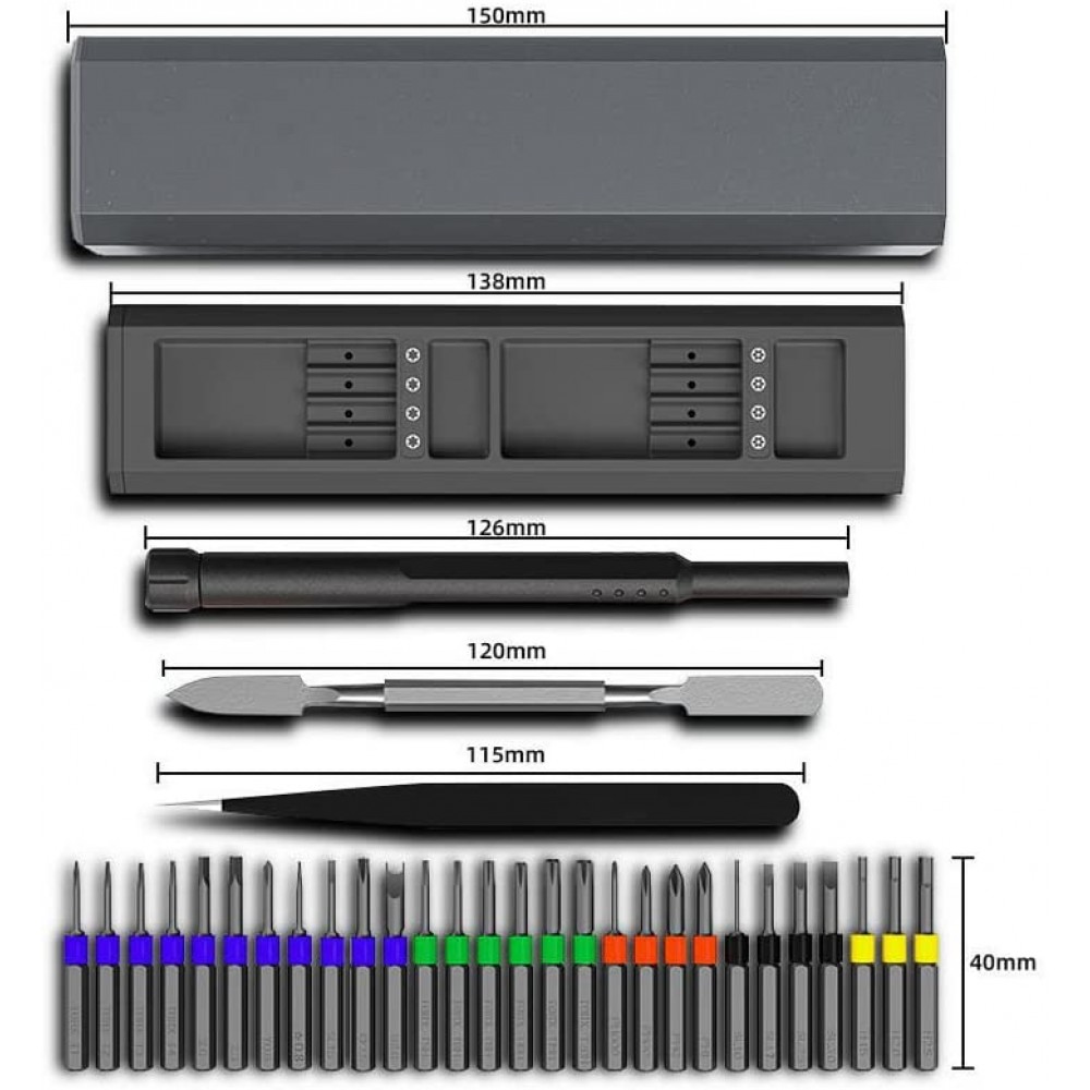 Juego de destornilladores de precisión, punta extendida, puntas magnéticas 32 en 1, herramienta de kit de destornilladores de bolsillo