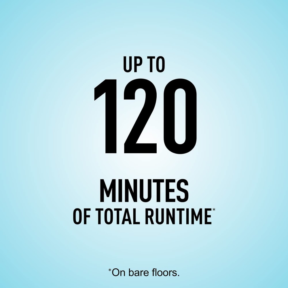 - Tiempo de funcionamiento de 120 minutos: limpieza de suelo a alfombra en todo el hogar, hasta 2 horas.