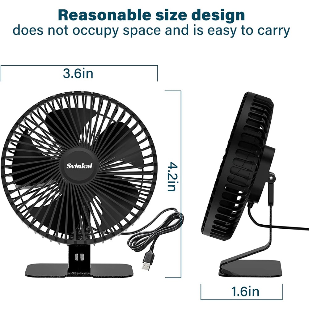 Svinkal Ventilador de escritorio USB, ventilador de mesa de escritorio ultra silencioso de 6 pulgadas, ajuste de 90, alimentado por USB.