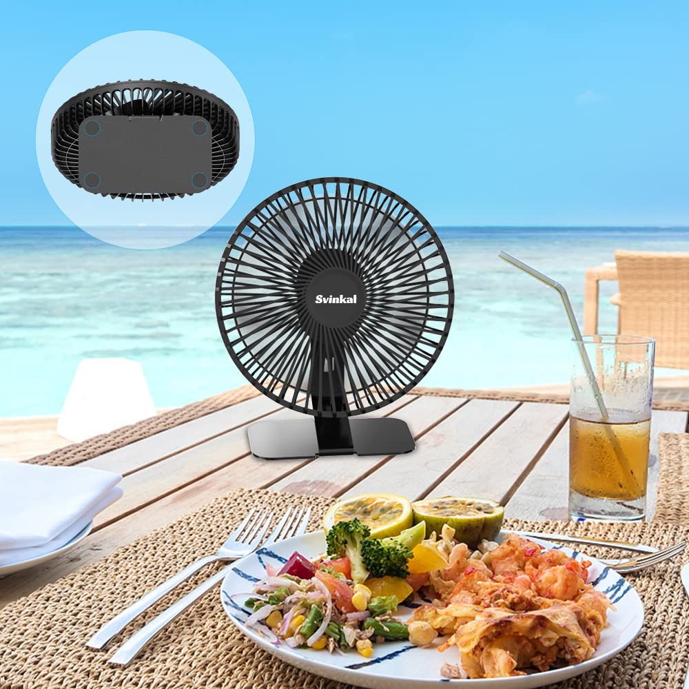 - 【Valor de decibelios ultra silencioso】Este ventilador de escritorio USB tiene un buen manejo de ruido. Incluso en modo de velocidad de sobreviento, el ruido es inferior a 55 dB. mientras que el engranaje más bajo tiene un valor de ruido de menos de 45 dB. Es un buen compañero para tranquilizarse en el trabajo y dormir, ideal para tu escritorio, oficina, dormitorio, caravana y camping. El ventilador de escritorio Svinkal te dará un verano tranquilo y fresco.