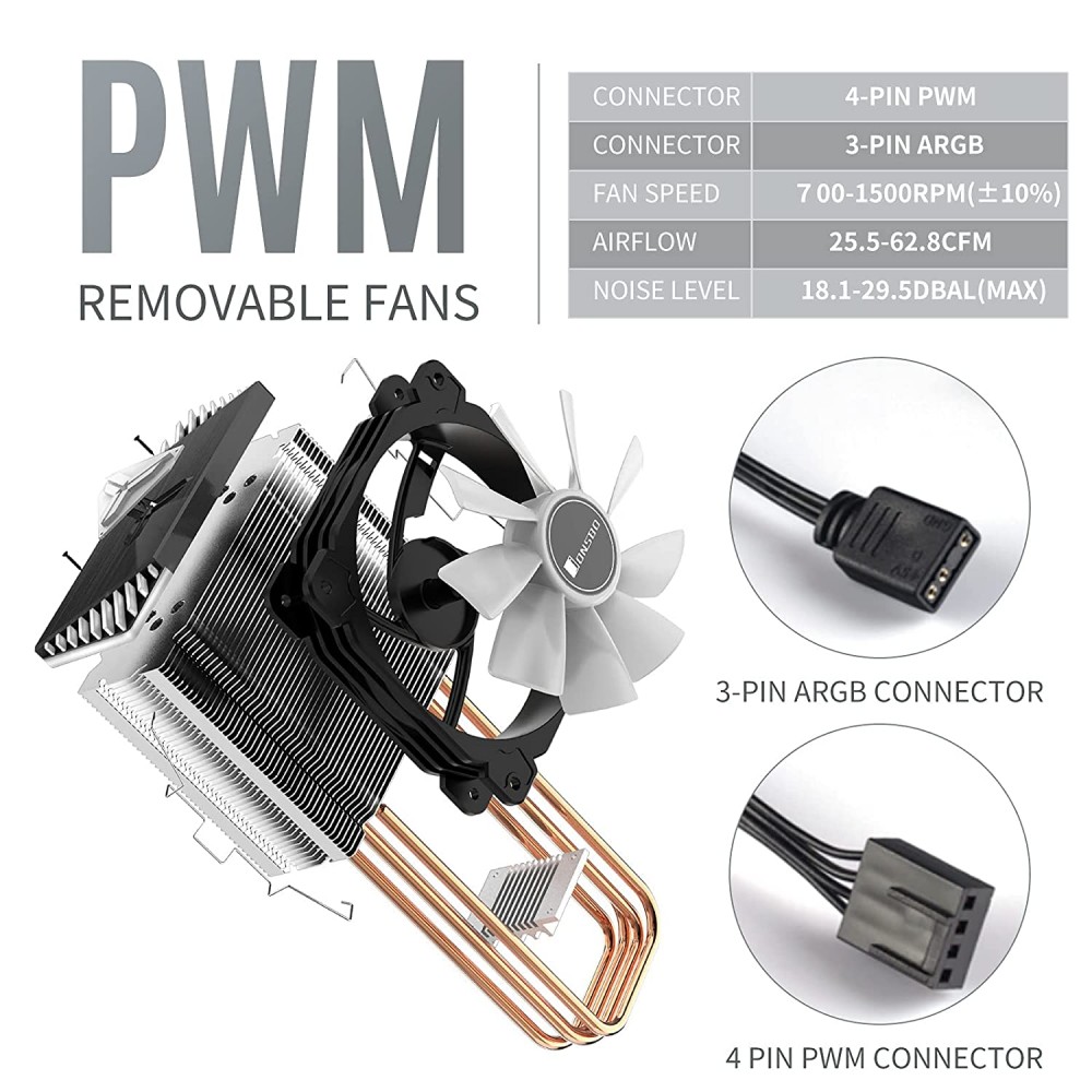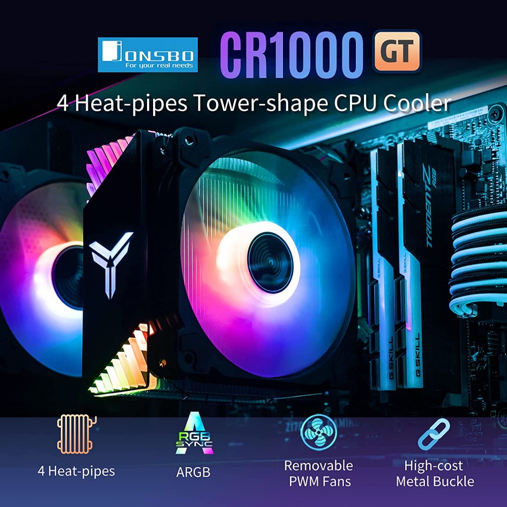 JONSBO CR1000GT ARGB Enfriador de aire de CPU, ventilador de refrigeración de CPU RGB con 4 tubos de calor.