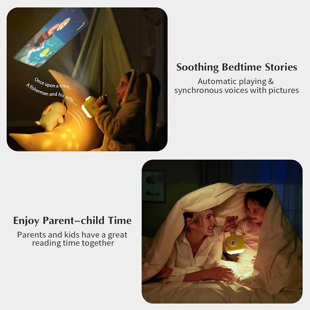 - Un momento dulce de historia con los padres: con la ayuda del proyector de libros de cuentos para niños, los padres encontrarán que sea más fácil hacer que sus hijos se queden dormidos y tengan un gran tiempo de cuentos junto con los niños, la iluminación suave y el sonido suave crean un ambiente perfecto para dormir para niños de 3 a 5 años, la dulce hora de la historia puede calmar a los niños de 2 años y ayudarlos a dormir mejor. Nuestro proyector para niños es una gran opción como regalo para niñas de 3 años