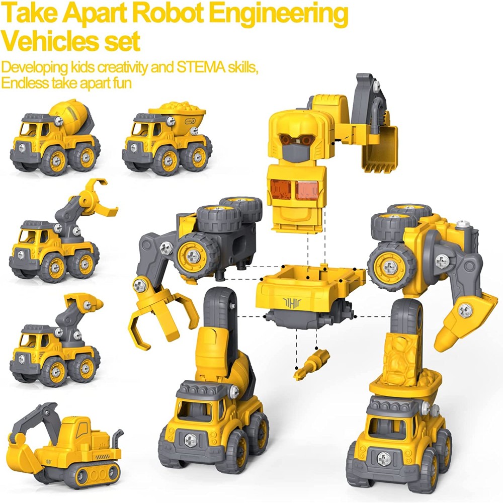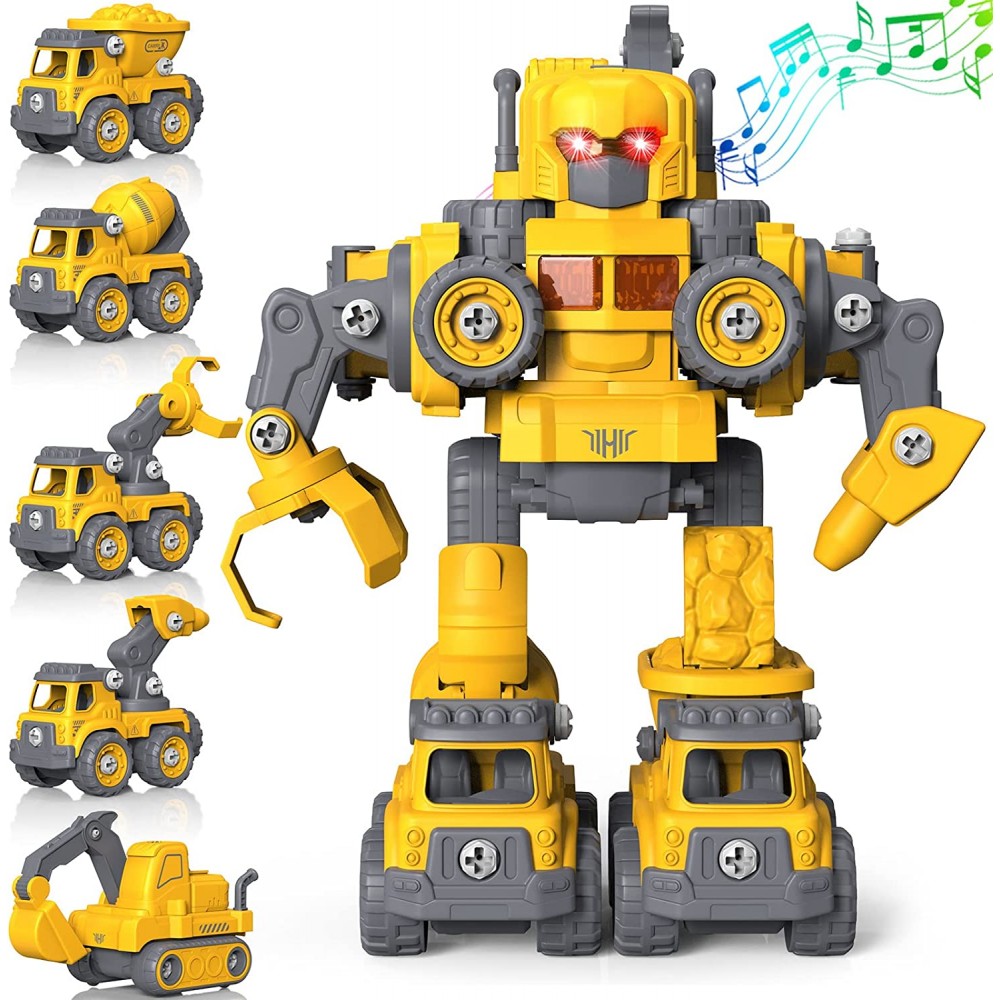 Juguetes robot 5 en 1 para niños, STEM para niños, transformers de robot con 5 camiones.
