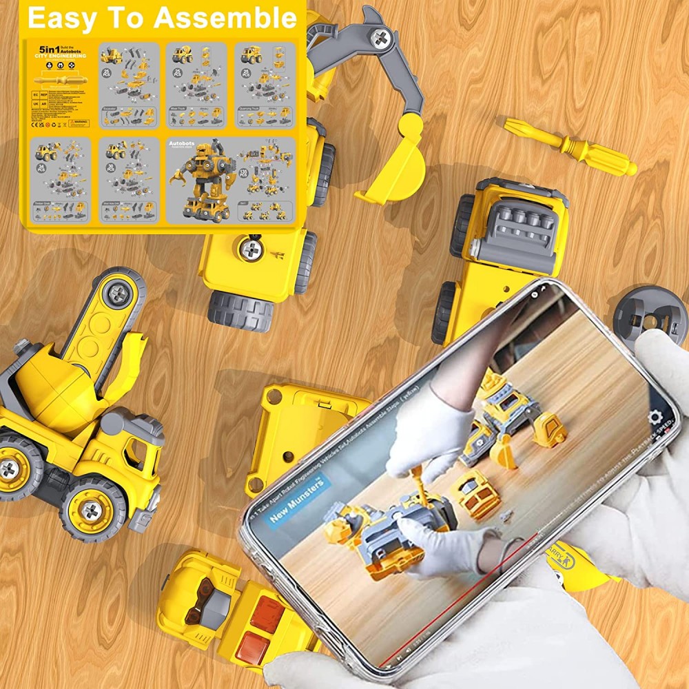 - Vehículos de construcción 5 en 1: hay 5 camiones en la caja y vienen con instrucciones fáciles de seguir (idioma español no garantizado). El juego de construcción de juguetes de robot consta de 5 vehículos para llevar, todos los coches se pueden desmontar completamente en piezas de coche y transformarse en un robot grande o montar en cinco coches separados. Estos juguetes para niños fomentan el juego solo y colaborativo, lo que permite a los niños y niñas promover el trabajo en equipo y la paciencia.