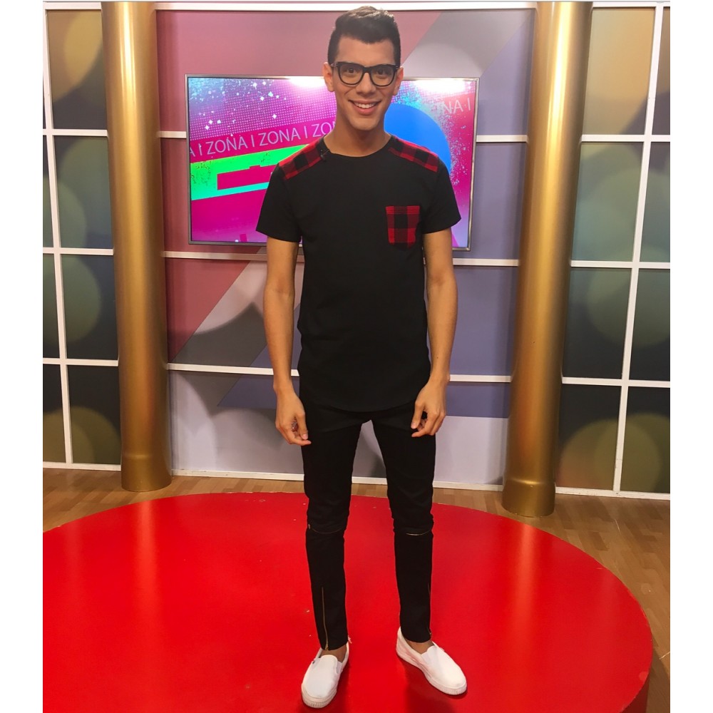 Franela Negra con Detalles a Cuadros Tallas S M y L KONEKODESIGN