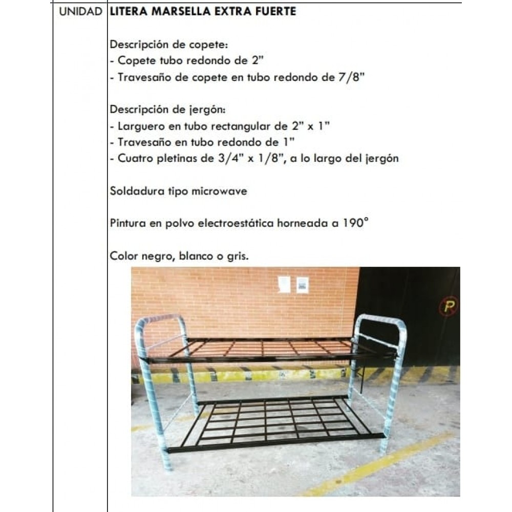 Litera metálica tipo FAVECA medidas 1 x 1.90 x 1.50 cm de alto, jergon reforzado.