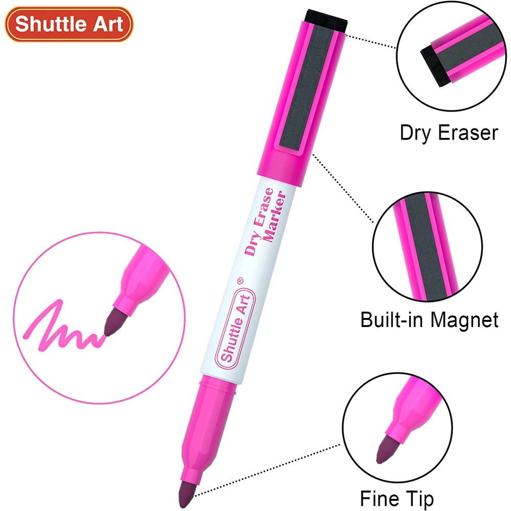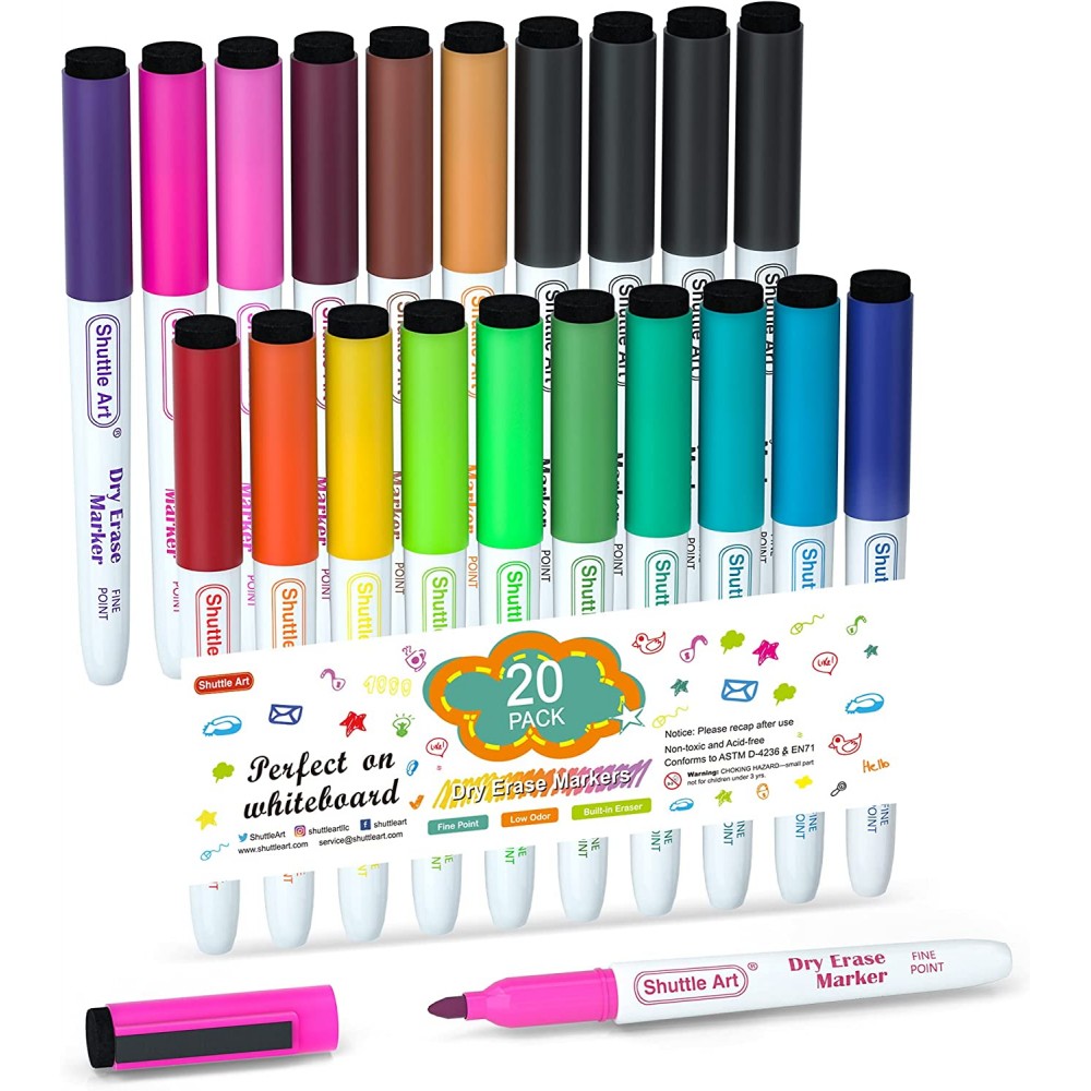 - Paquete de 20 17 colores: el paquete de 20 marcadores magnéticos de borrado en seco de Shuttle Art contiene 17 colores surtidos y 3 marcadores de borrado en seco de punta fina extra negra con borrador de pizarra. ¡Más colores con un precio más barato! Con tinta brillante duradera para leer fácilmente marcadores en el aula o sala del consejo.