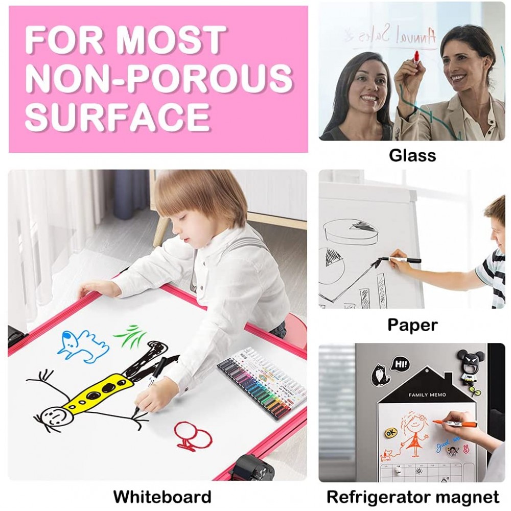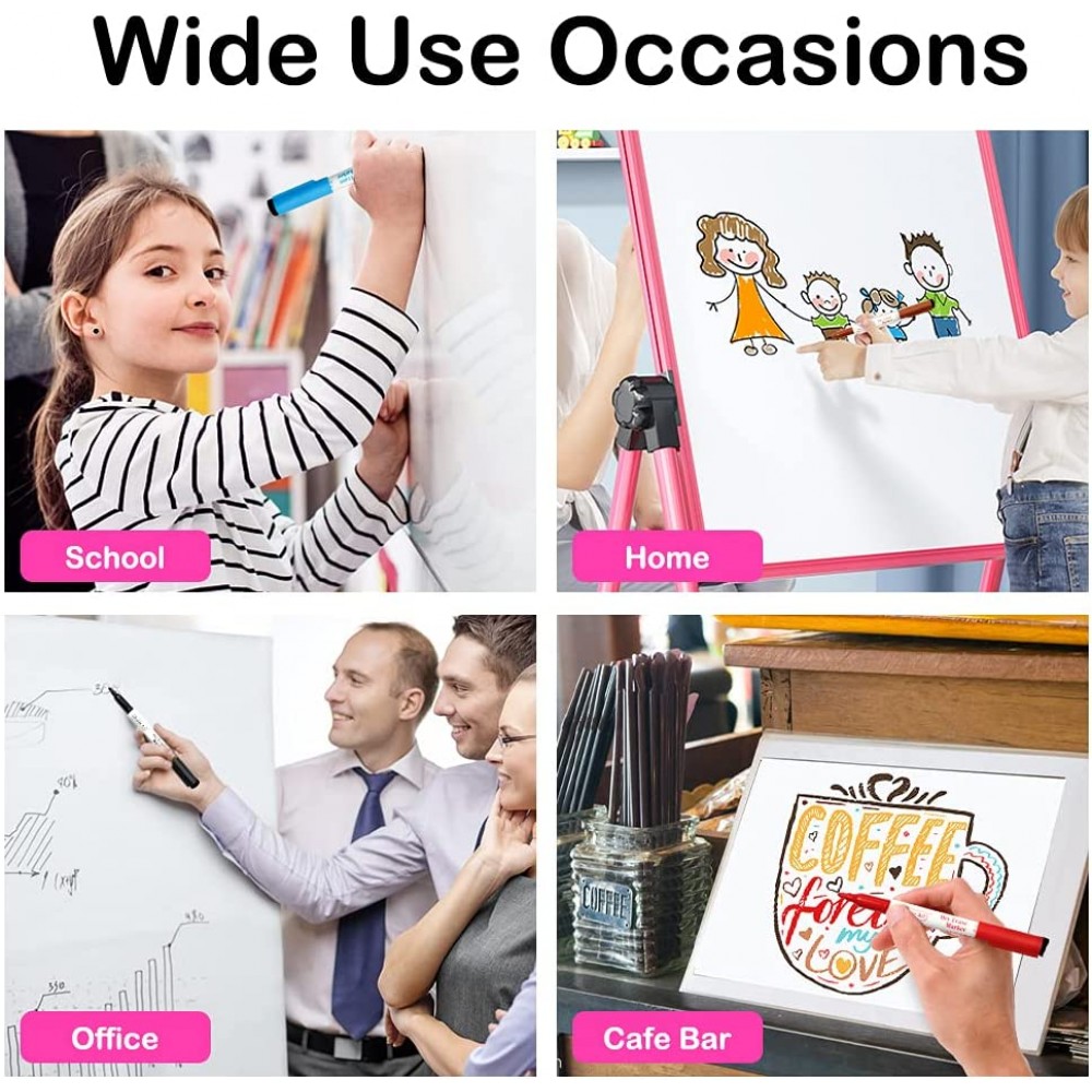 - Limpiar fácilmente: escribir suavemente y secar rápidamente con tinta lavable se puede limpiar fácilmente de pizarras blancas, vidrio, espejo y la mayoría de superficies no porosas con cualquier paño o borrador. El kit es adecuado tanto para adultos como para niños. Se puede utilizar en muchos lugares como el hogar, aulas, oficinas, sala de juntas, sala de conferencias, restaurante, estudio, etc.