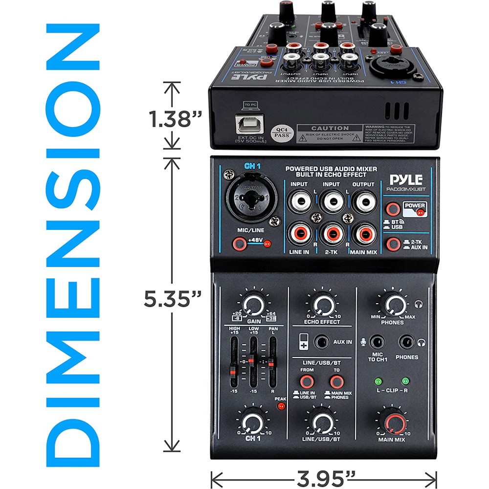 - 3 canales: este controlador inalámbrico de interfaz de audio de 3 canales de Pyle es la manera perfecta de mezclar audio desde MP3, micrófono y dispositivos conectados por Bluetooth. Equipado con volumen, panorámica, efecto eco y controlador de ganancia