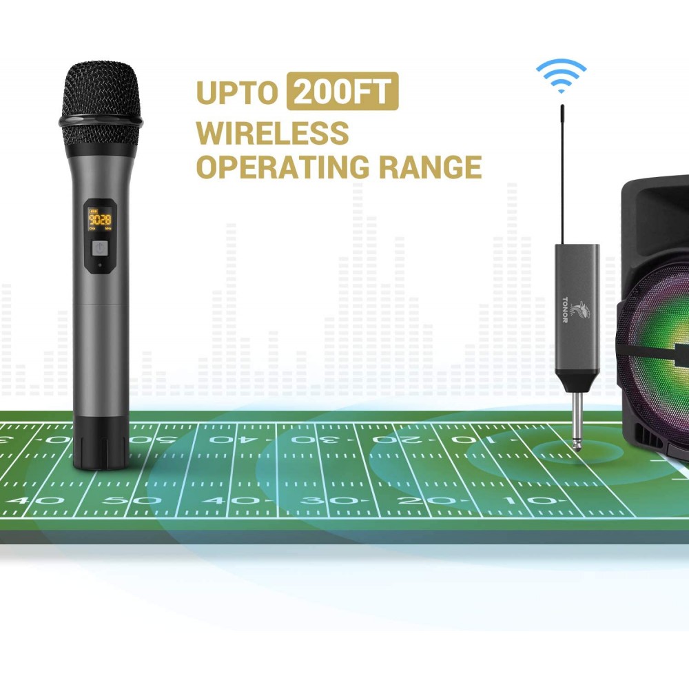 - Uso amplio: señal estable, rango de funcionamiento de 200 pies (línea de visión), adecuado para actividades en interiores y exteriores, como karaoke en casa, iglesia, boda, conferencia y rendimiento de escenario pequeño.