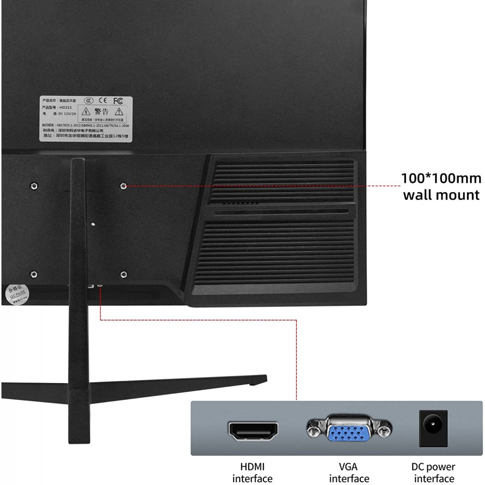 Monitor de PC, monitor Full HD de 21.5 pulgadas 1920 x 1080P IPS pantalla de computadora, sin marco, 75Hz, 5ms, puertos VGA y HDMI