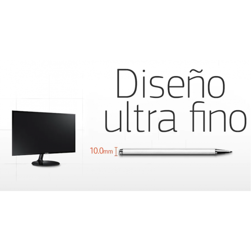 • Panel ultra fino: Con un increíble diseño fino de 10 mm —tan esbelto como un bolígrafo—, el panel de una pieza es el doble de fino que los monitores Samsung normales