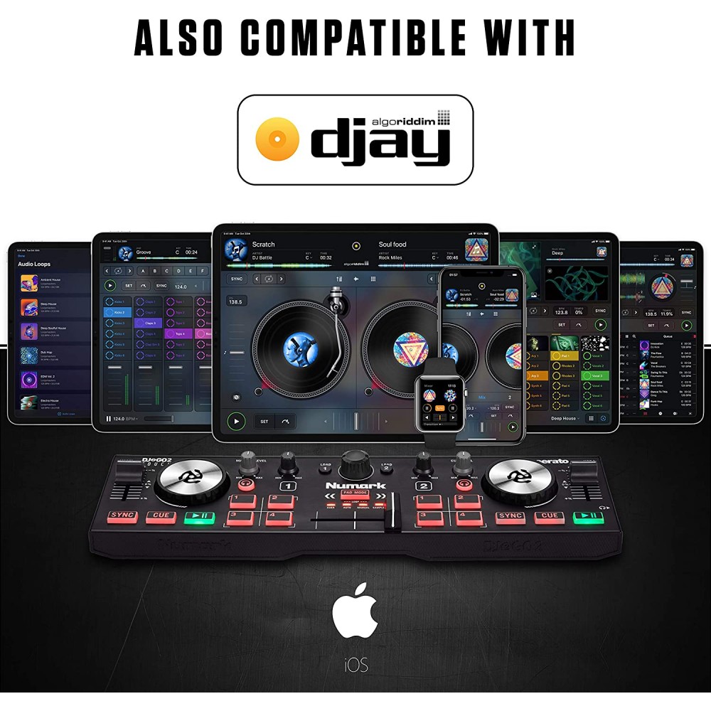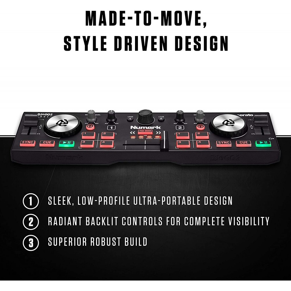 - Ultraportátil y con muchas funciones: controlador USB de DJ compacto de 2 canales para Serato DJ Lite (incluido) para Mac y PC; mapeo MIDI para utilizarlo con otro software de DJ popular (incluido virtual DJ).