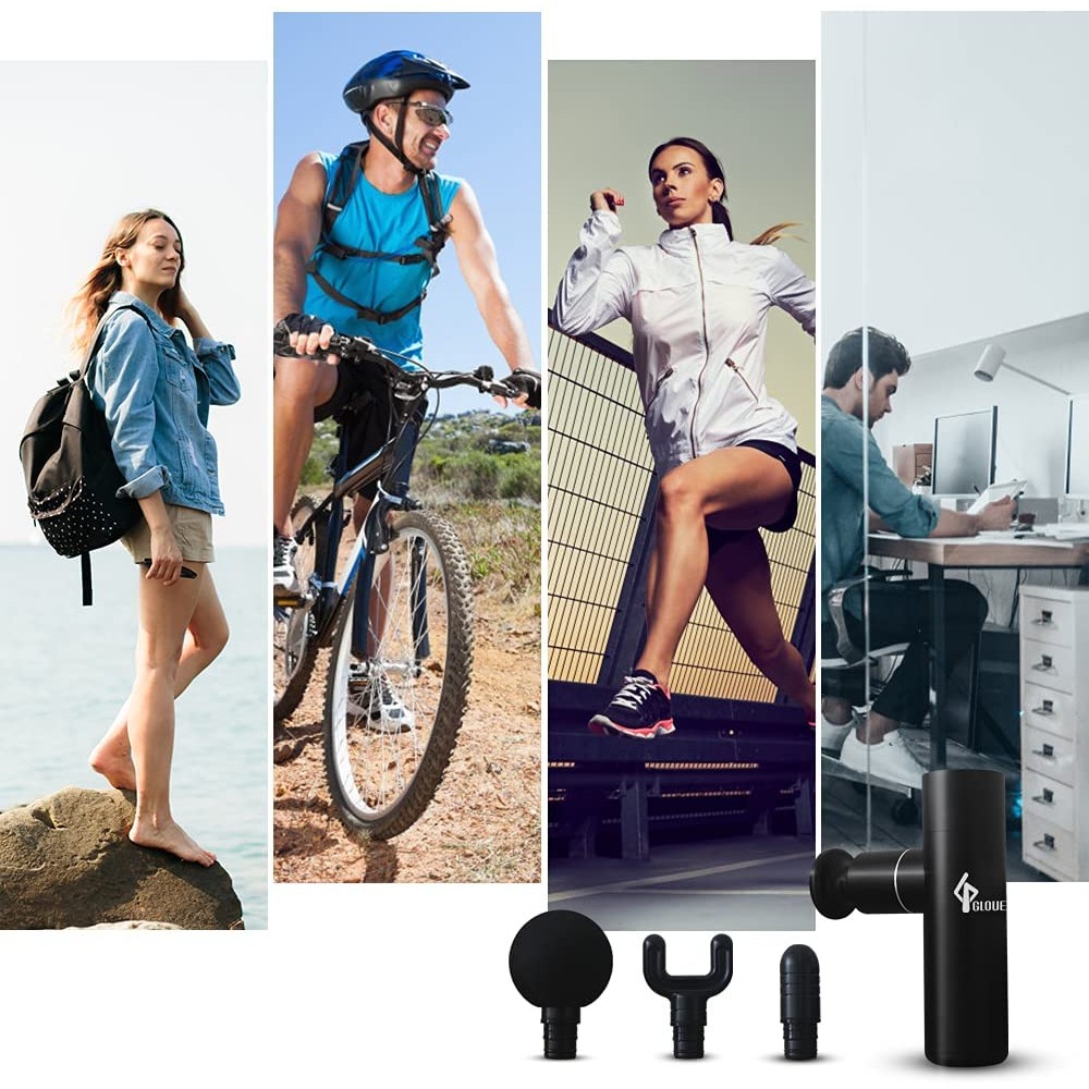 - Ultrasilencioso y seguro: es seguro para el cuerpo. Posee un potente motor sin escobillas de alto par y adopta la técnica de deslizamiento silencioso para que no moleste a otros cuando disfrutas de tus ejercicios (tan bajo como 30 – 50 dB). Pistola de masaje para atletas, tanto hombres como mujeres, sería escalar las montañas, montar en bicicleta, culturismo, correr, nadar o levantamiento de pesas