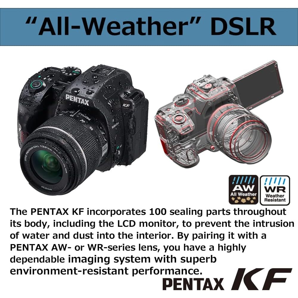 PENTAX KF APS-C Cámara digital SLR 18-55 WR kit con monitor LCD a prueba de polvo, resistente a la intemperie y de ángulo variable, color negro