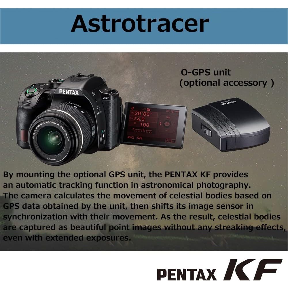 - Mediante el uso de la unidad opcional O-GPS2 GPS con el KF, es posible el seguimiento automático de cuerpos celestes sin un dispositivo ecuatorial