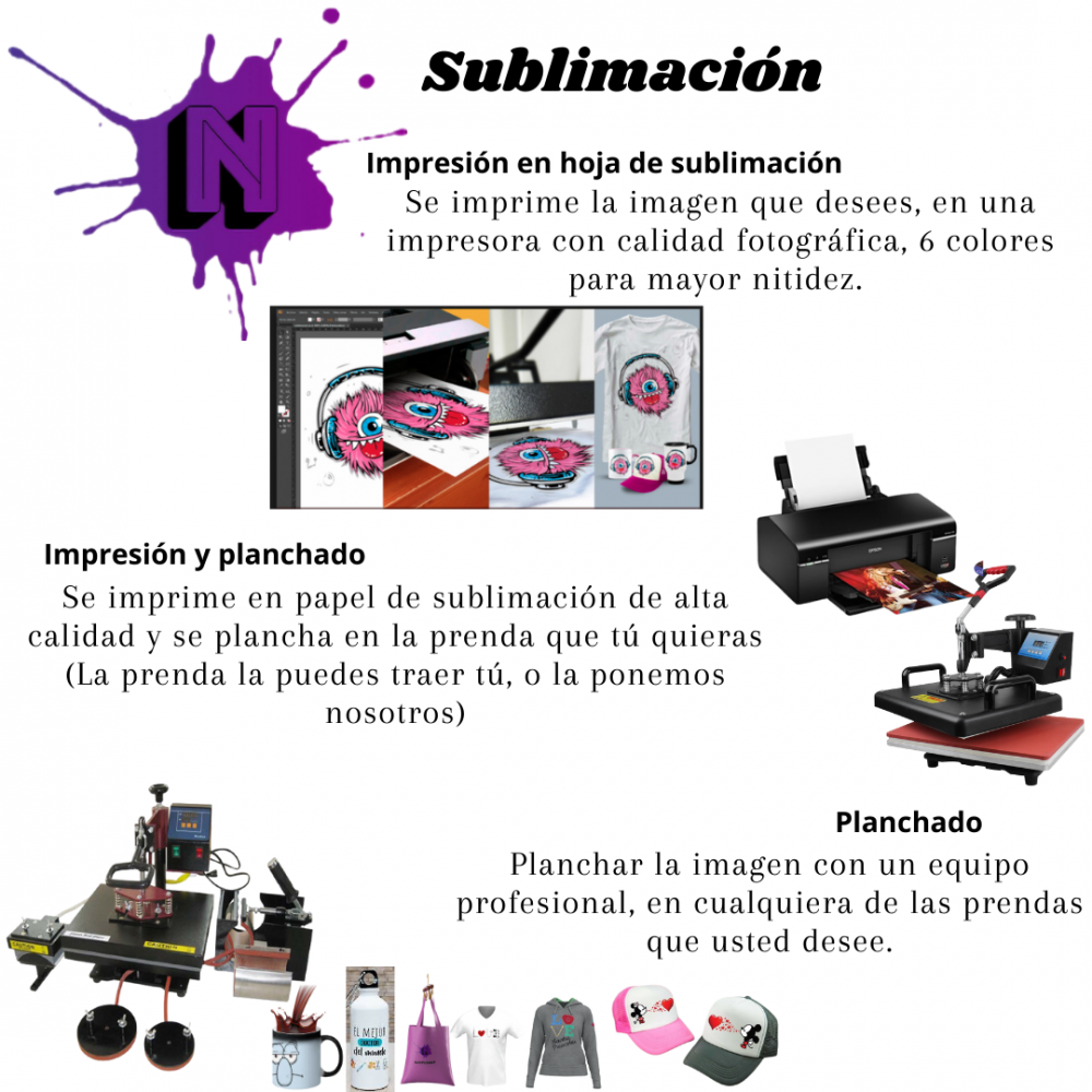 Realizamos sublimación, impresiones, planchado, corte en plotter. Tenemos excelentes precios para emprendedores, invierte menos, gana más en poco tiempo y sin mucho esfuerzo