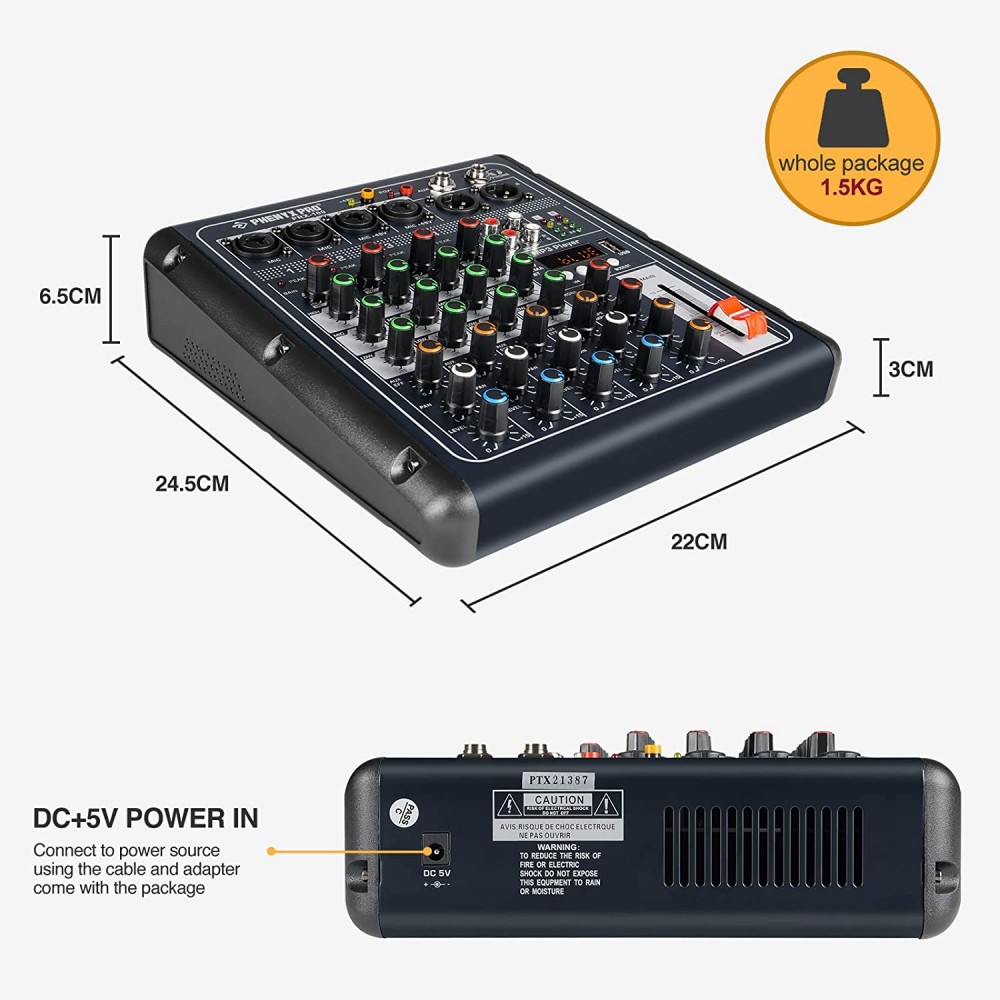 - Sonido de alta calidad: este mezclador analógico proporciona una calidad de sonido precisa, nítida y clara. El efecto de sonido extra limpio y el tamaño portátil compacto junto con la función de grabación lo hacen ideal para grabación de música en casa, grabación de reuniones, transmisión web, podcast y mucho más