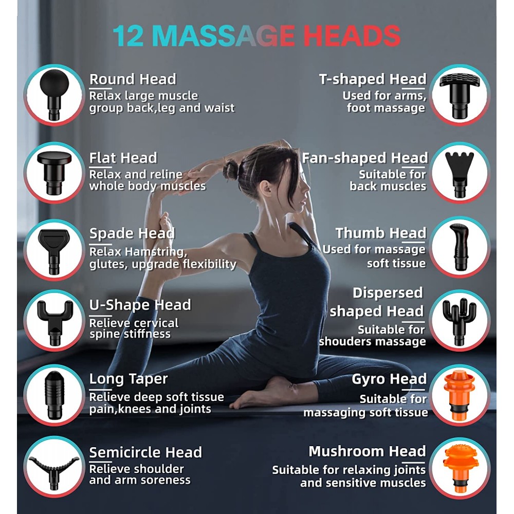 Pistola de masaje de percusión de tejido profundo, eléctrico, portátil súper silencioso,Y12 Pro.