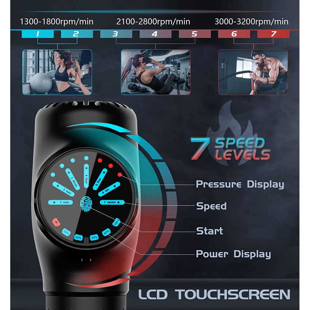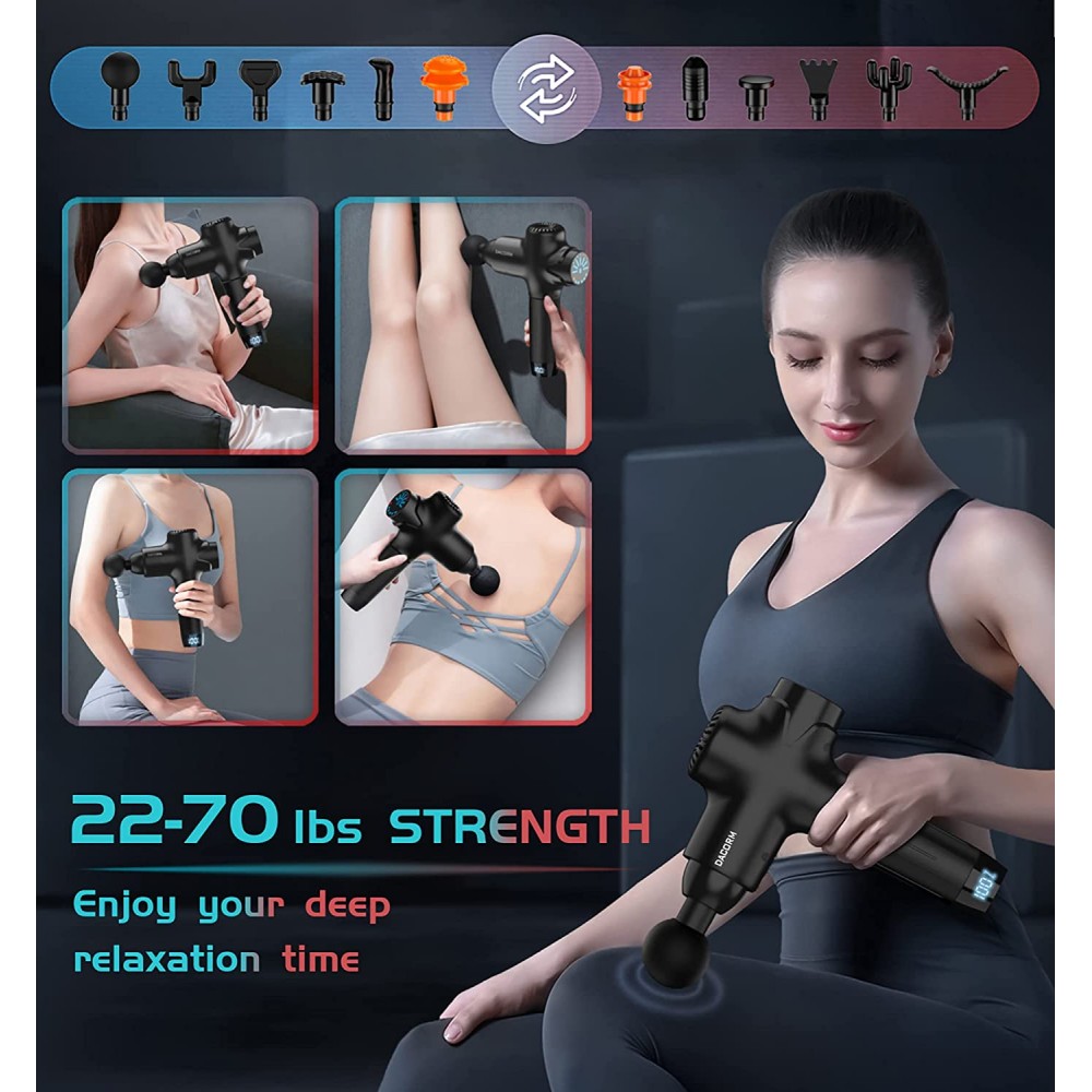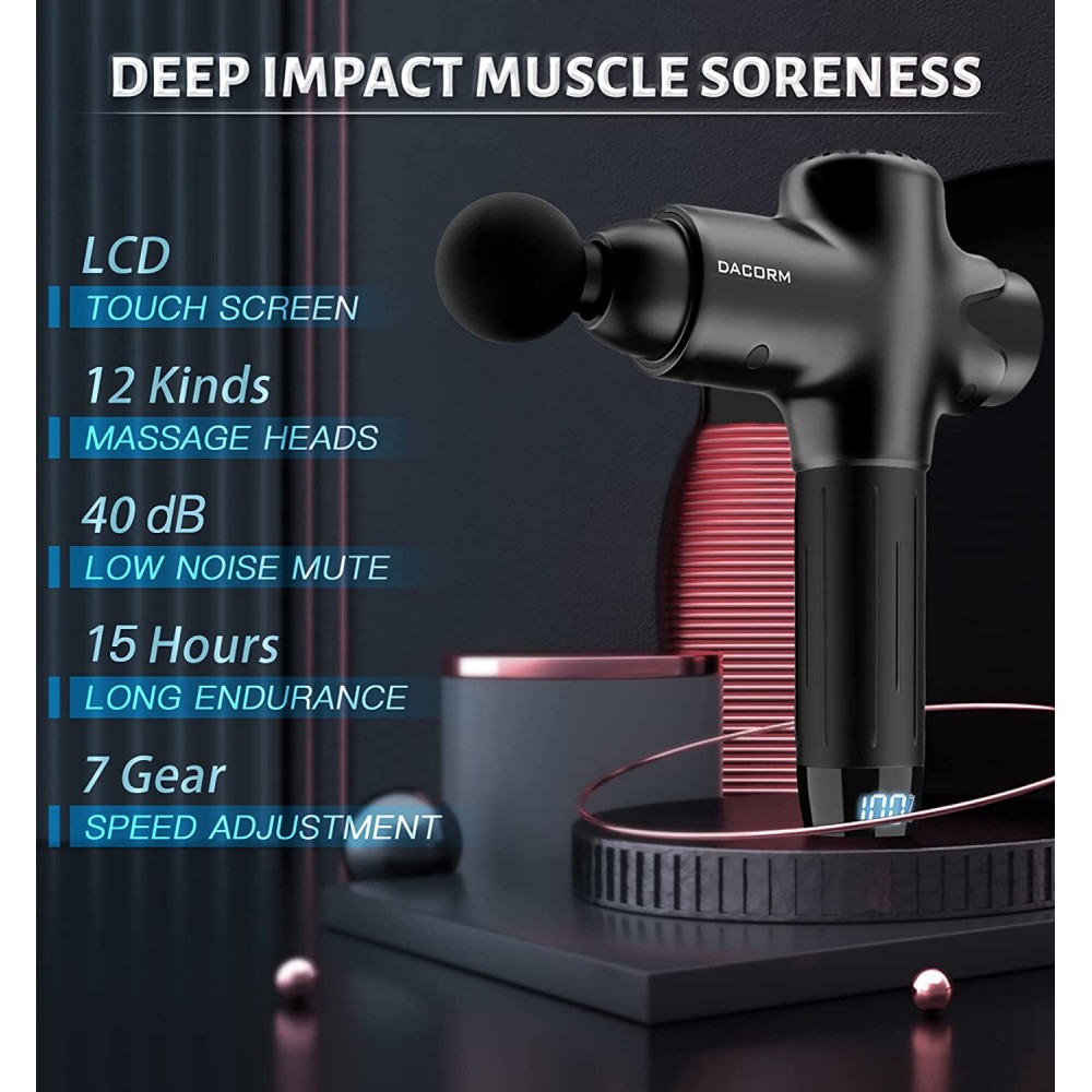 - Pistola de masaje Musle, 7 niveles de velocidad y 12 cabezales de masaje, satisface diferentes necesidades corporales, una familia solo necesita una pistola de masaje DACORM, que puede ayudar eficazmente a aliviar la espalda, cuello, brazos, piernas, dolor muscular y promover la circulación sanguínea.