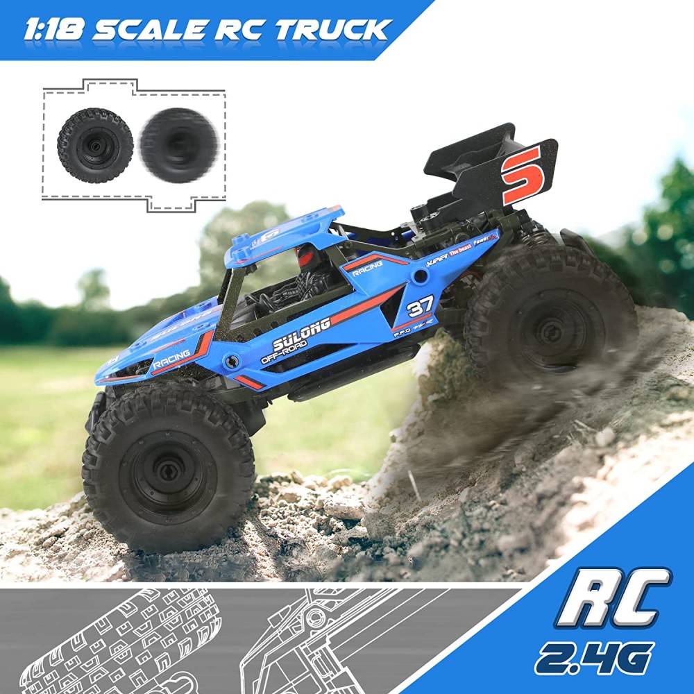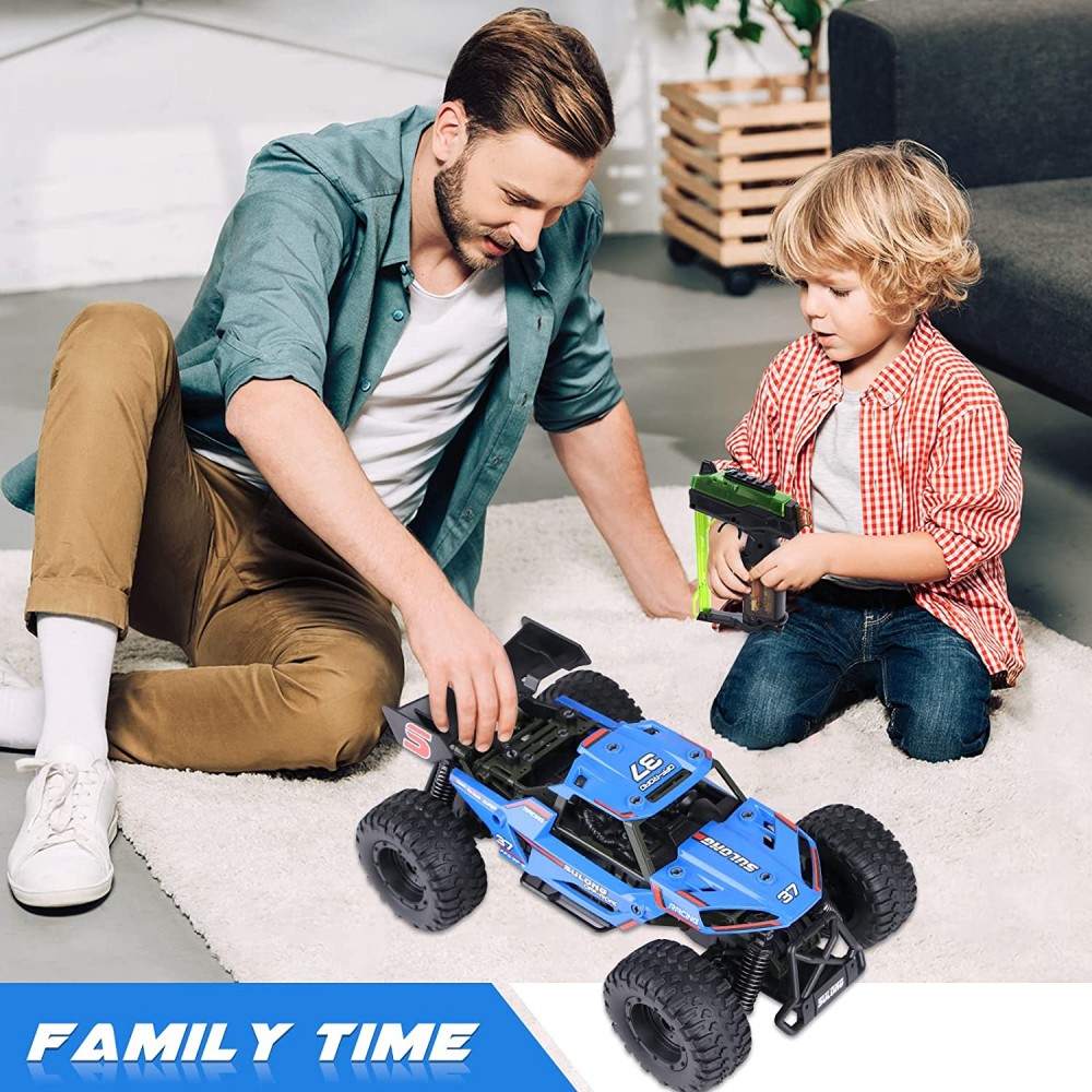 - Control remoto de 2.4 G y 4 canales: el coche RC adopta tecnología de 2.4 G para controlar funciones como avance, atrás, giro izquierdo y derecho y competición multijugador sin interferencias. El diseño como el potente motor y los neumáticos antideslizantes hace posible la conducción estable del coche, lo que te ofrece una experiencia definitiva llena de velocidad y emoción. El transmisor funciona con 2 pilas AAA (no incluidas). El coche funciona con 3 pilas AAA (no incluidas).