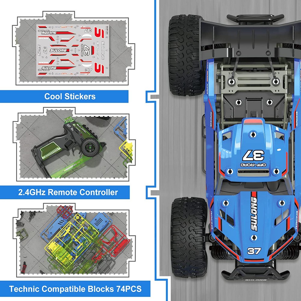 - 【DIY para la creación】Mejora la imaginación y la creatividad de tu hijo desafiándolos a construir sus propios coches con 74 piezas y accesorios de fácil construcción. Simula la estructura de un automóvil real, por lo que nuestro pequeño ingeniero obtendrá una comprensión preliminar del principio de la estructura del automóvil durante el montaje. Es adecuado para niños y niñas de 8 a 10 años en adelante, los grandes juguetes de coche RC animan a tu hijo a aprender a través del juego.
