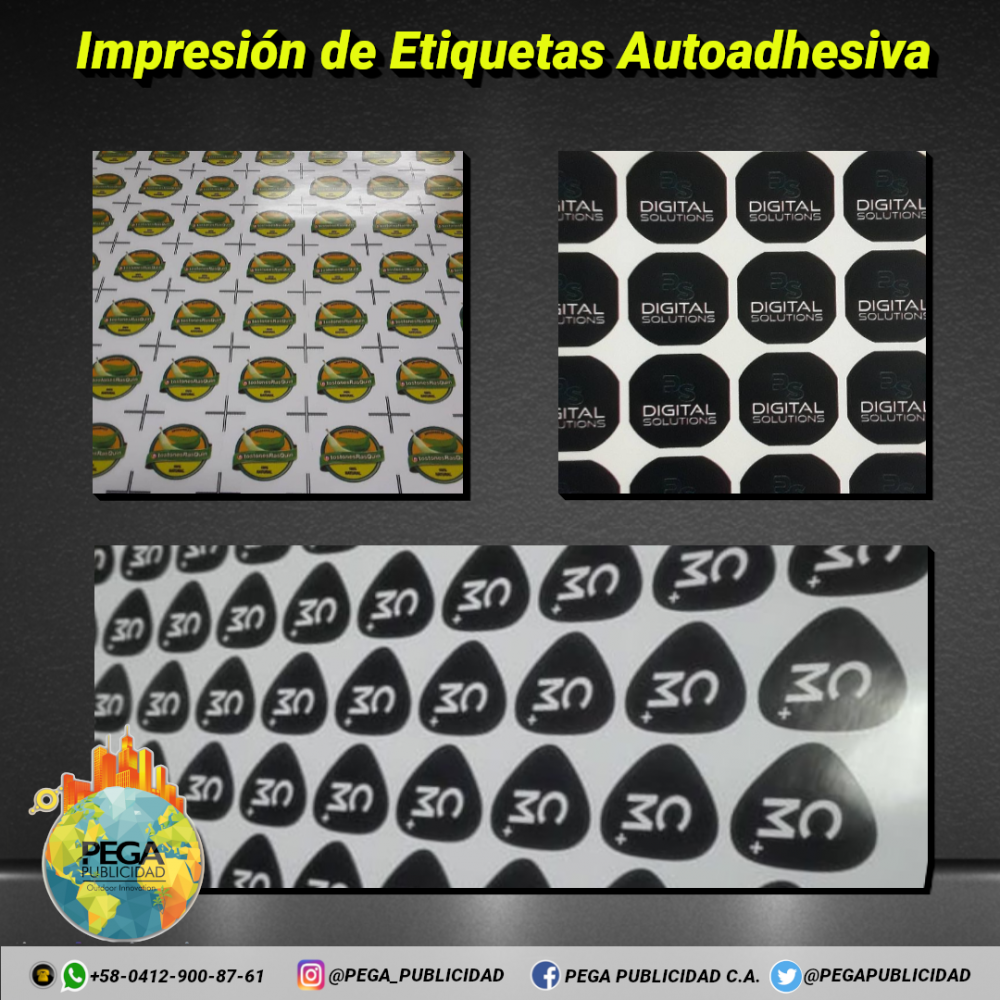 De Etiquetas con corte en material de vinilo autoadhesivo.