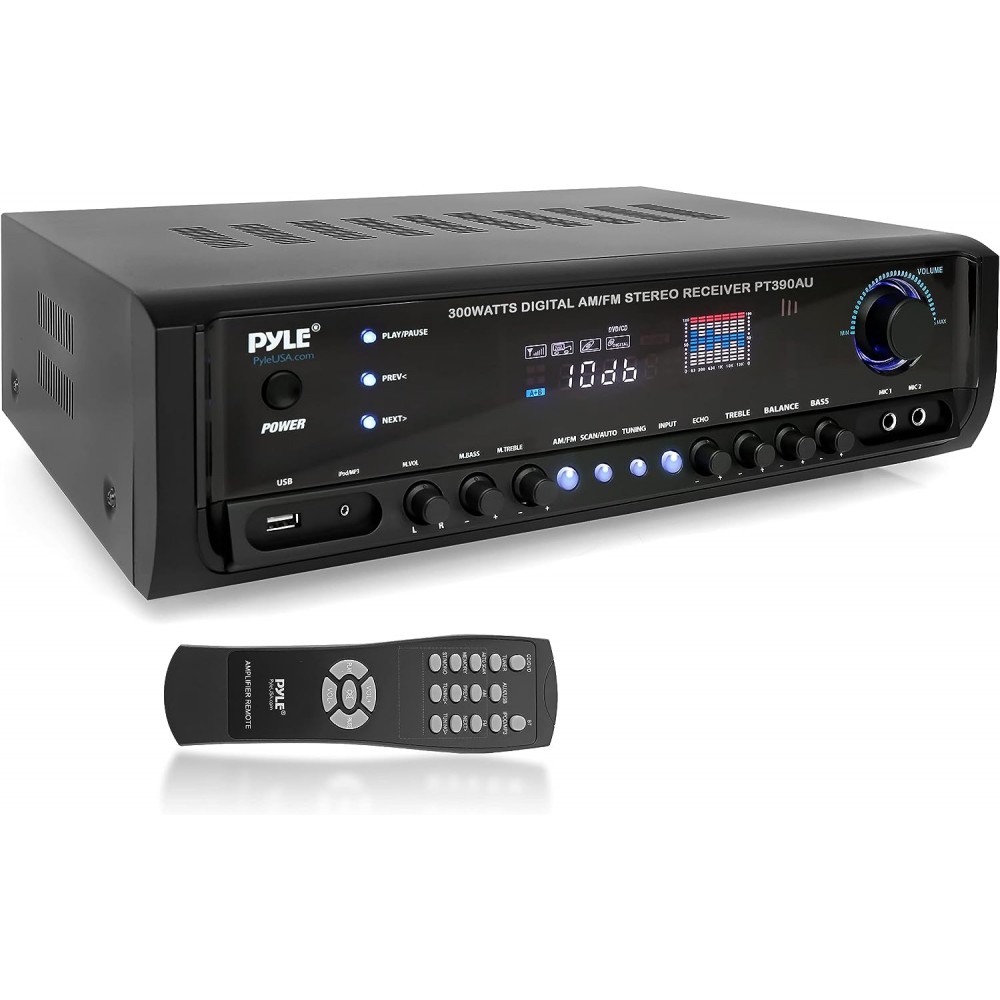 - Potencia de 300 vatios: el receptor estéreo digital AM/FM Pyle es perfecto para tu sistema de PA, karaoke y entretenimiento en casa. Te da una potencia máxima de 300 W para ser utilizada para múltiples altavoces con impedancia de 4 a 16 ohmios que te permite disfrutar de audio amplificado de alta calidad